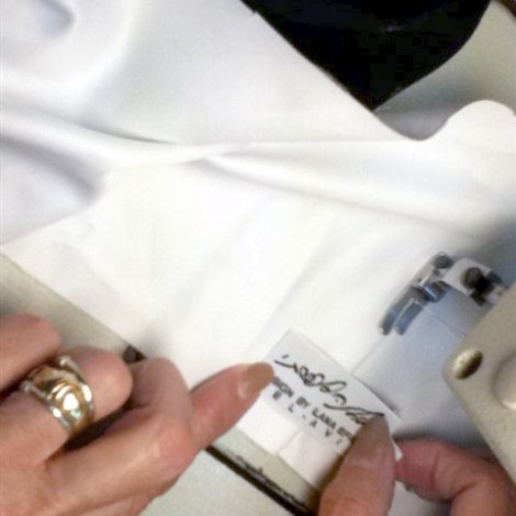 תווית 'אילנה אפרתי' נתפרת על צידו הפנימי של הצווארון