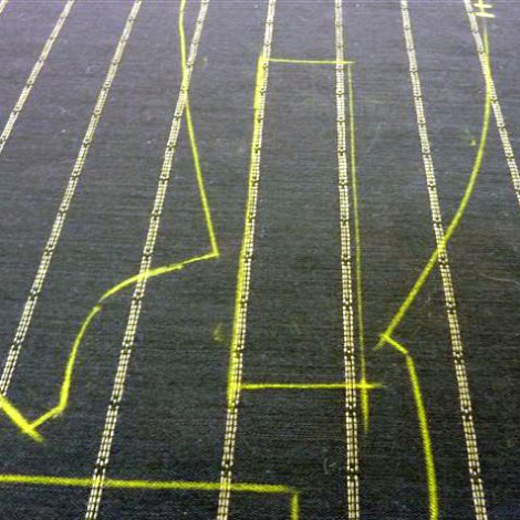 בעזרת גיר צבעוני מציירים את כל חלקי גזרת המקטורן על הבד הפרוש