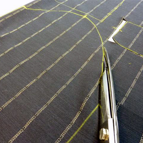 בגזירת מקטורן מפוספס חשובה ההקפדה על כיוון הפסים והתאמתם בחיבור בין חלקי הבגד השונים