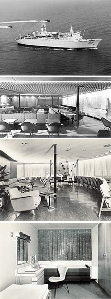 לפני שנים, כאשר ציפו שנתיבי השיט מישראל יהפכו פופולריים עבור תושבי הארץ ותיירים מהעולם, הגיעה שעתן היפה של אוניות השיט המפוארות. יומרת העיצוב היוקרתית של עולם השיט הישראלי הגיעה לשיאה באוניית 'שלום' של חברת צים, שהושקה בשנות השישים בקול גדול, וחייה חיים קצרים של פאר ורהב, עד שקרנה ירדה בעקבות תאונה קטלנית עם מיכלית נורווגית. האוניה, שבין מעצביה הייתה האדריכלית דורה גד, הייתה מופת לעיצוב ישראלי של התקופה, בשילוב מפתיע בין מינימליזם וראווה. עבודות של מיטב האמנים הוצגו בקיטוני הנוסעים, והפכו את האוניה למוזיאון נייד, ששט ברחבי אגן הים התיכון.