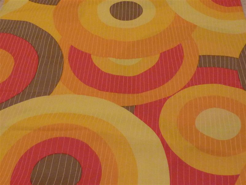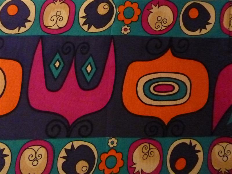 בד מתוצרת מפעל "כיתן" לייצוא, שנות השישים. הדפס בסגנון ישראלי בהשראת פסיפסים מקומיים. אוסף פרטי אילנה אפרתי