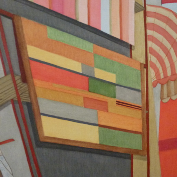 השבוע ביקרנו בתערוכה של נורית דוד בגלריה גבעון בתל אביב. אנחנו מטיילות בתערוכה היפה ונורית מתארת את ההשראות והרעיונות אשר מהם נבעו העבודות. אני רואה את הבדים ואת הבניינים, את הנולים בהם נארגים בדי משבצות צבעוניים ונורית מספרת על סבה שהיה בעל מפעל לאריגה בנס ציונה ומראה לי את דוגמאת הבד שסבה ארג מצוירת בפינת אחת העבודות.