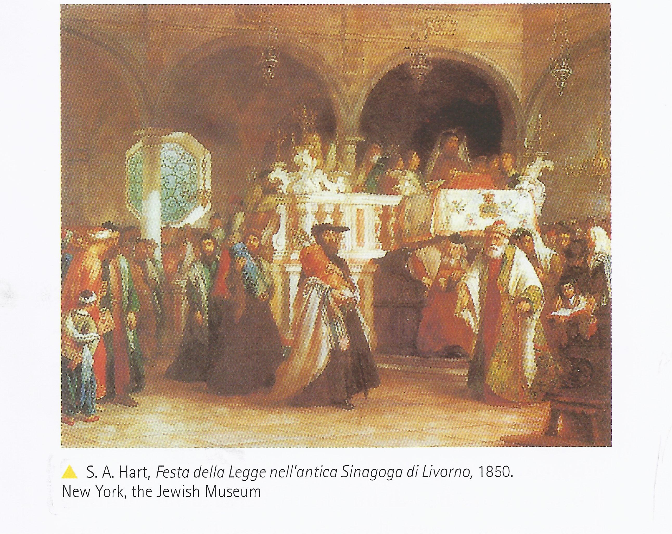 חגיגת החוקים הליבורננים בית הכנסת בליבורנו בציור מהמאה ה-19