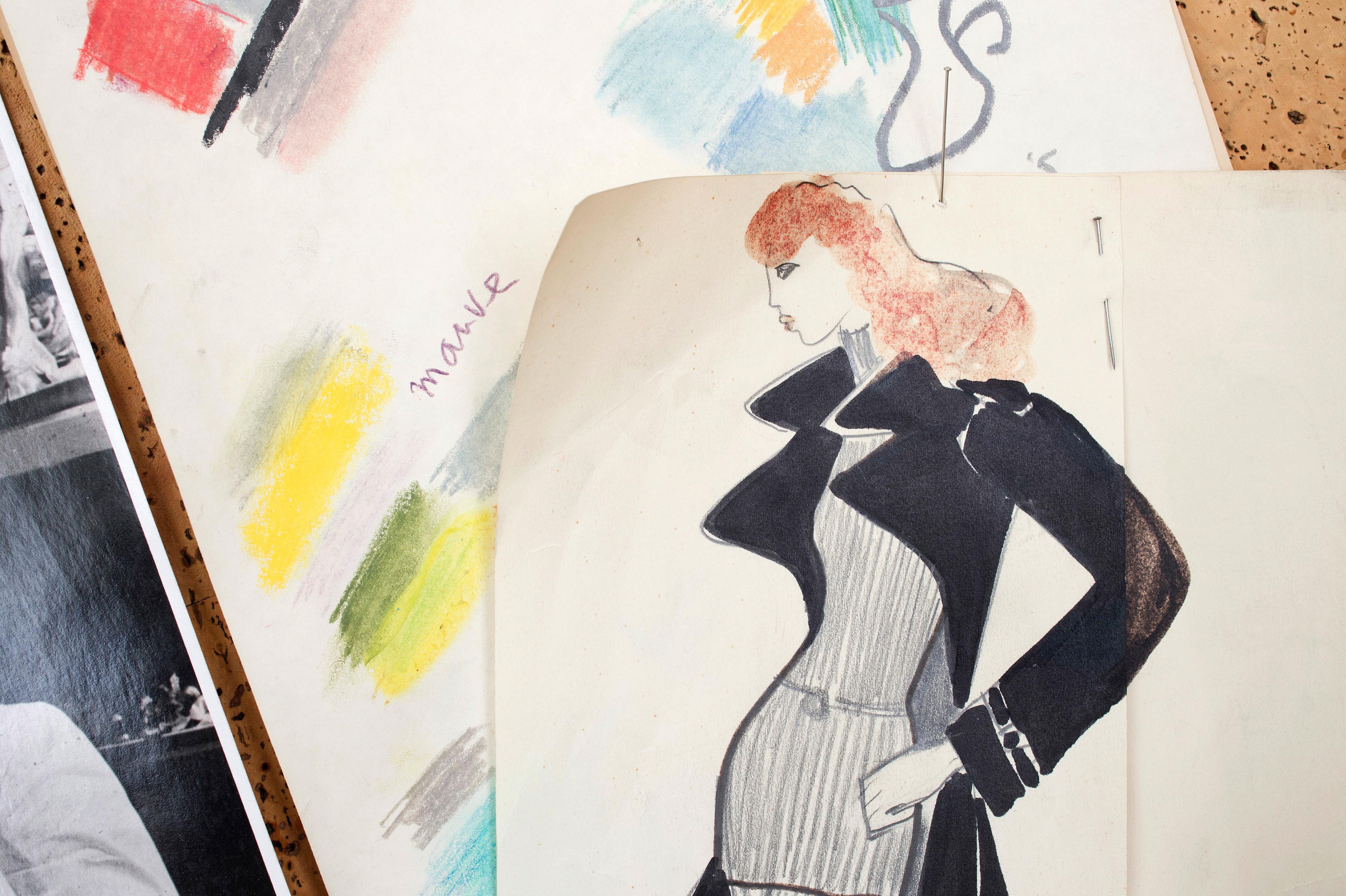 התערוכה בבריסל מרשימה במיוחד כי היא כוללת מבחר רב של סקיצות מקוריות שלא הוצגו עד כה. הציורים של סן לורן מתעדים את הקולקציות שעיצב לבית האופנה בראשותו משנות השישים ועד שנות השמונים. לרישומים המינימליסטיים, קו עבה בעיפרון אפור, מצורפות פיסות בדים מהם ייתפר הבגד. סדרת הרישומים האלה מייצגת את כוחו העיצובי של סן לורן: קו נקי וברור, מינימליזם צורני, ובדים איכותיים ומרשימים.