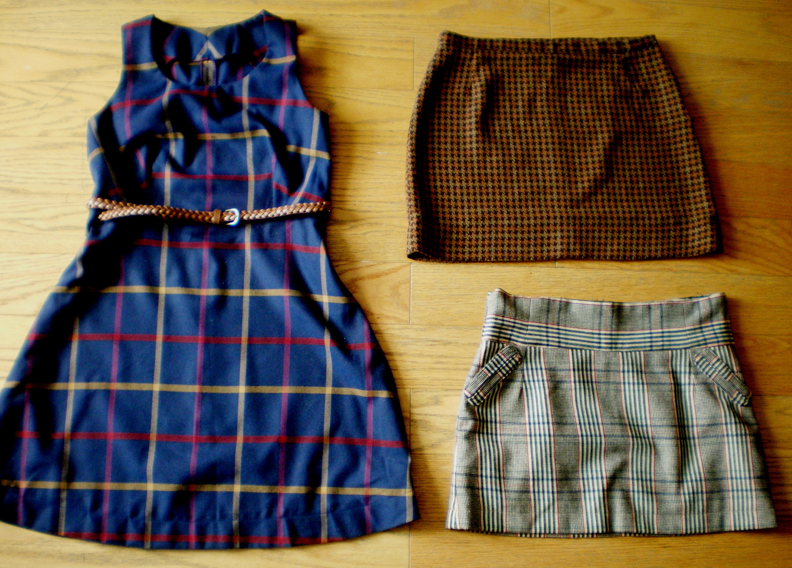 את הפריטים החורפיים האהובים עלי, שתי חצאיות טוויד ושמלת משבצות צרה, הכנתי לכבוד נסיעת חג מולד לפאריז.