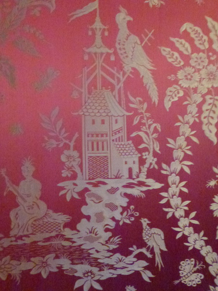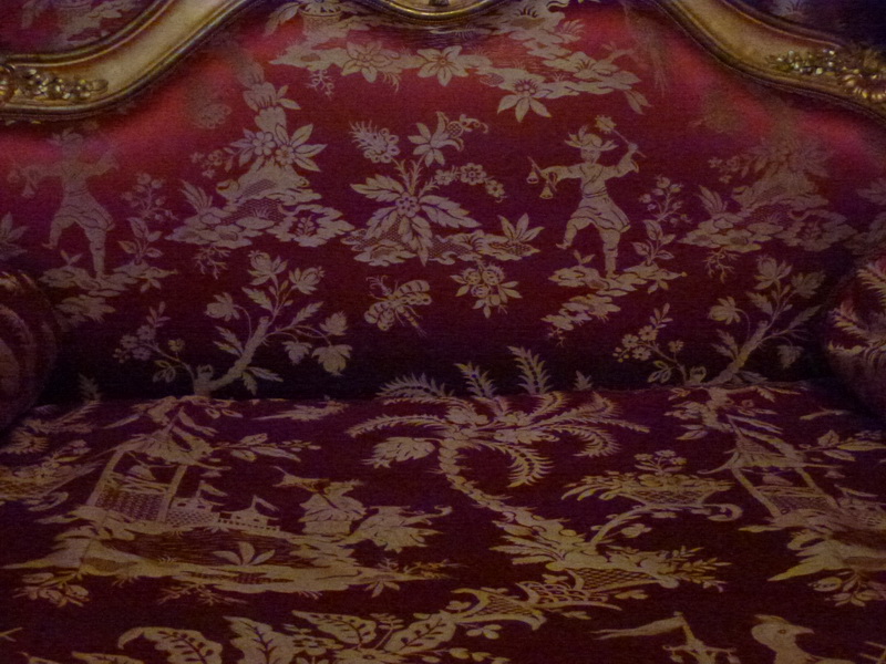 בדי משי ז'קרד ארוג במוטיבים סיניים, הטרנד האחרון בתקופת נפוליאון, מפארים עדיין את הוילונות ואת הספות