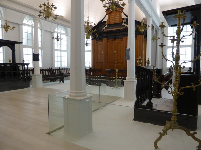 משם המשכנו אל שדרת בתי כנסת עתיקים בה מוצגים חדרי תפילה שפורקו ונאספו מקצווי תבל לשם הגיעו יהודים בנדודיהם. בית הכנסת הבהיר והאלגנטי של סורינם בעל ריצפת החול הלבן יכול לשמש לוקיישן מעולה לצילומי קולקציית "רזורט" עכשווית. בחדר הסמוך הרמנו את המבט אל תקרת עץ מקושטת מצוירת ביד אמן אשר פעם חיפתה בית כנסת בגרמניה.