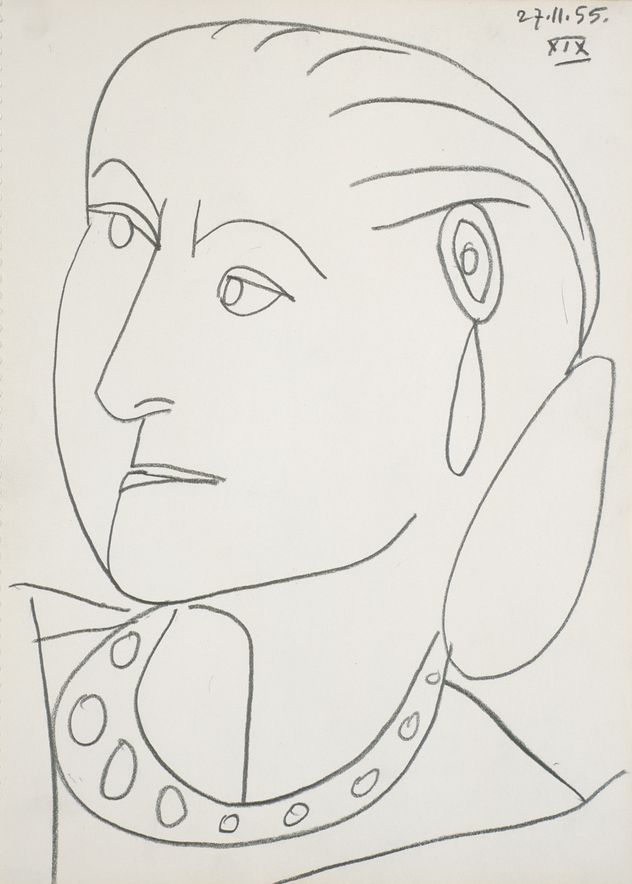 התערוכה מציגה תריסר רישומי פורטרט של הלנה שצוירו על ידי פיקאסו. הסיפור מאחורי הציורים מעניין לא פחות. מסתבר שהלנה רצתה זמן רב שפיקסו יצייר את תמונתה, אך הצייר התחמק. האישה הדעתנית, השתלטנית והאקסטרוגנטית הזו לא מצאה חן בעיניו. יום אחד, היא הופיעה בפתח ביתו בריביירה הצרפתית ודרשה שיצייר אותה. הוא הזמין אותה לסטודיו, והכין כמה רישומים שיהיו, כך אמר לה, הכנה לפורטרט המצוייר. אך לא הייתה לו שום כוונה לצייר אותה בשמן, ולכן רק הרישומים נותרו כעדות למפגש בין השניים.