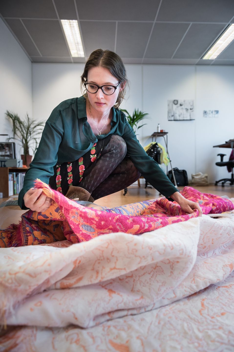"אני מתחילה מהבסיס של העיצוב שלי, מהורידים והחוטים. זה מה שהופך את הבד למה שהוא. איך סיב מוהר יכול להארג יחד עם פוליאסטר, בטכניקה ייחודית? ואיך זה יראה אם אני אשתמש בטכניקות שונות, זו לצד זו". כרגע, רוז מייצרת את הבדים במעבדת הטקסטיל של טילבורג שבהולנד, שם מציעים שירותי יצור בכמויות קטנות ובאיכות גבוהה למעצבים מקומיים.