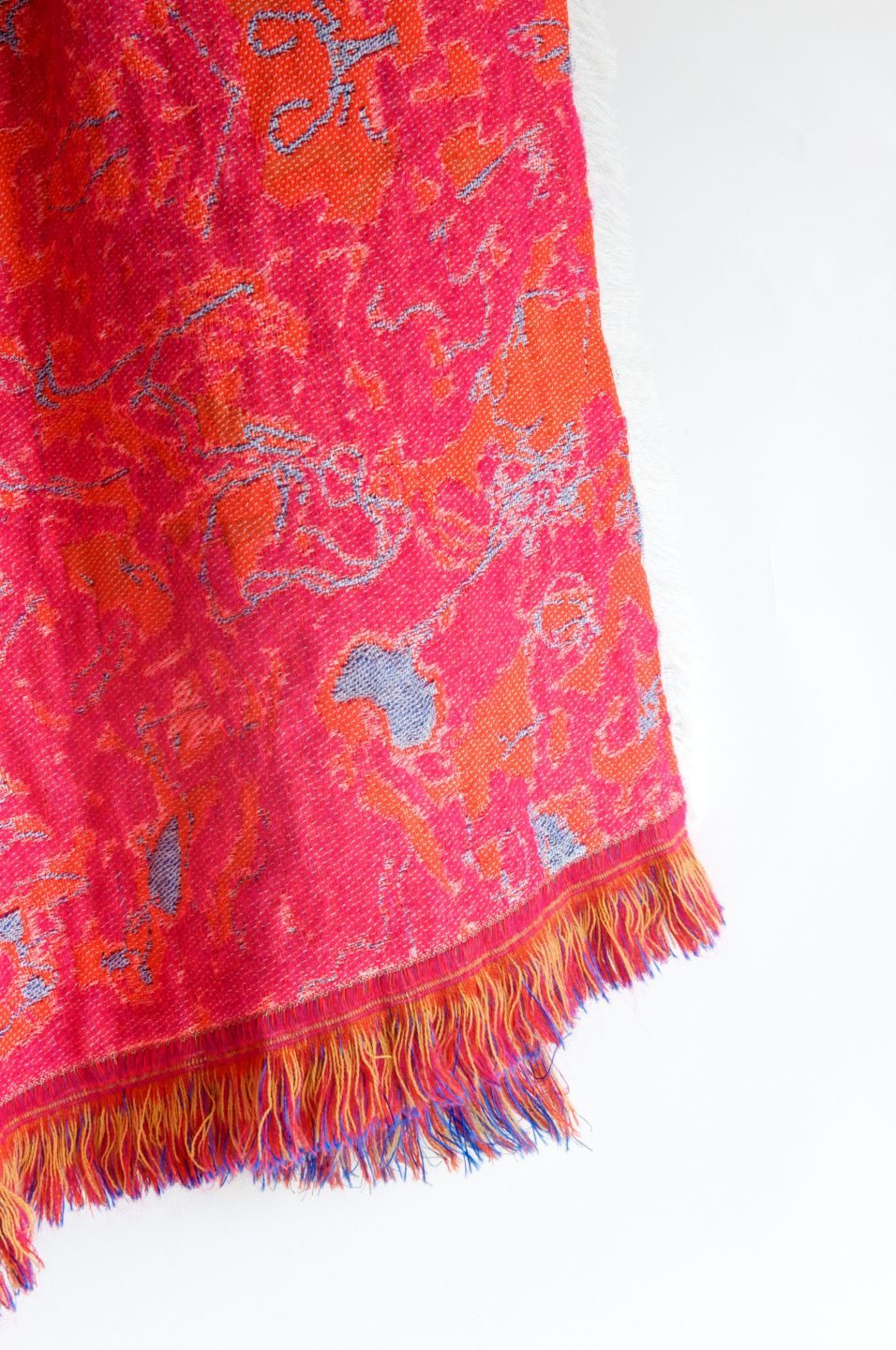 בשביל רוז, עיצוב מוצר יכול להתחיל בכל מקום. למשל, כרגע יש על שולחן העבודה שלה בקבוק דיו. היא מספרת שהמבנה והדפוס של כתמי הדיו האקראיים כל כך מעניינים, שהיא לא יכלה להפסיק להתבונן בהם!" "לקולקציית הפרנזים קילפתי את חלקו העליון של מזרן, והדוגמא של הדבק שהתגלה בו היה מאוד יפה. זו הייתה ההשראה לעיצוב הגרפי של הבדים. אני מציירת, סורקת, צובעת, מדפיסה, ועושה את כל זה שוב ושוב עד שהדוגמא נראית טוב". אבל העיצוב עצמו מתחיל בנול. "אני מסתכלת על שיטות האריגה, איך הן נראות ביחד, איך הסוגים השונים של הסיבים עונים זה לזה? כך אני אורגת 10סמ, משנה סיבים, צבעים וטכניקות, אבל גם משנה את הדוגמא הגרפית, אם אני אוהבת את הטכניקה אבל חושבת שהדוגמא צריכה יותר רווח, עד שאני מרוצה מהתוצאה".