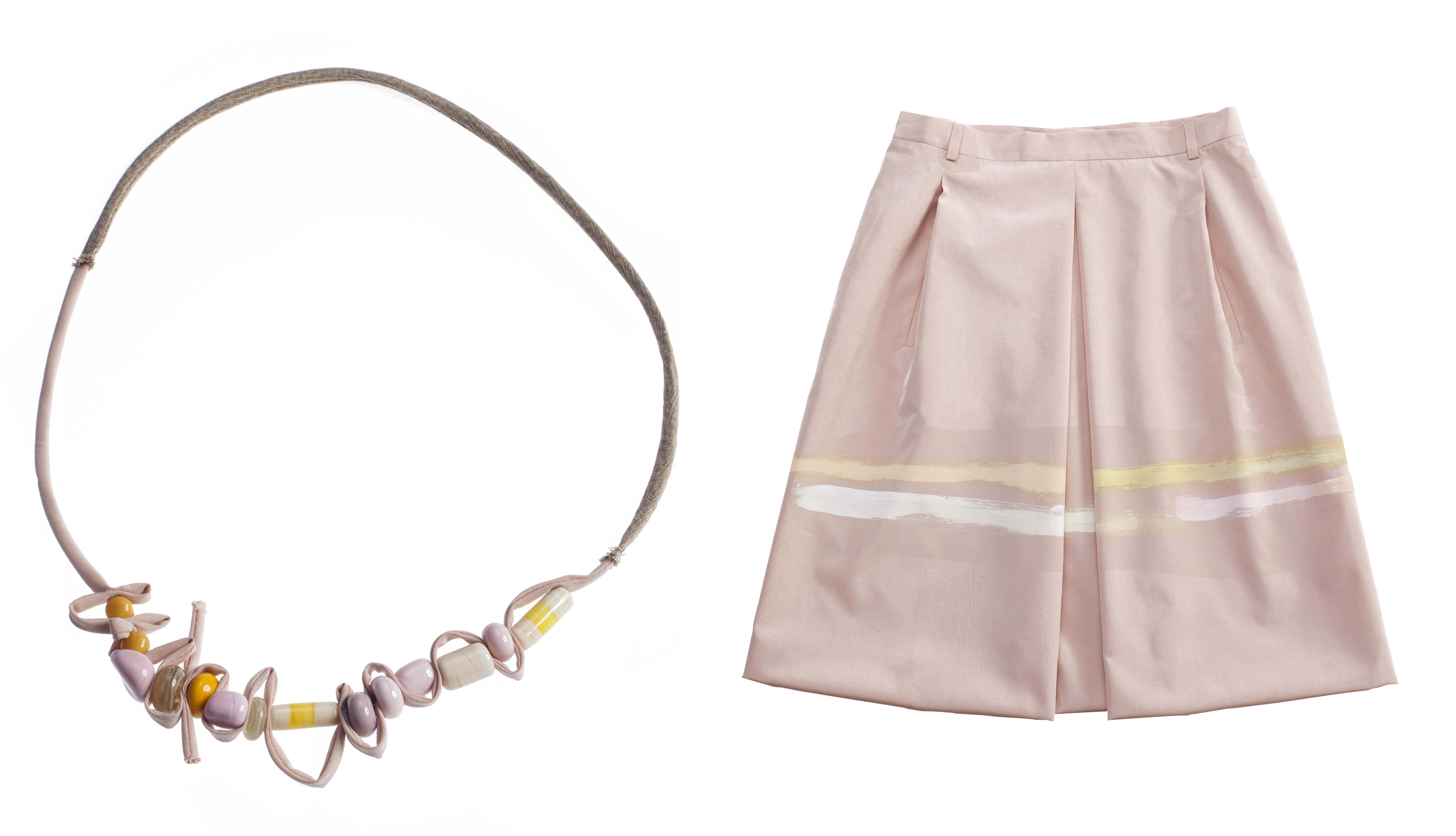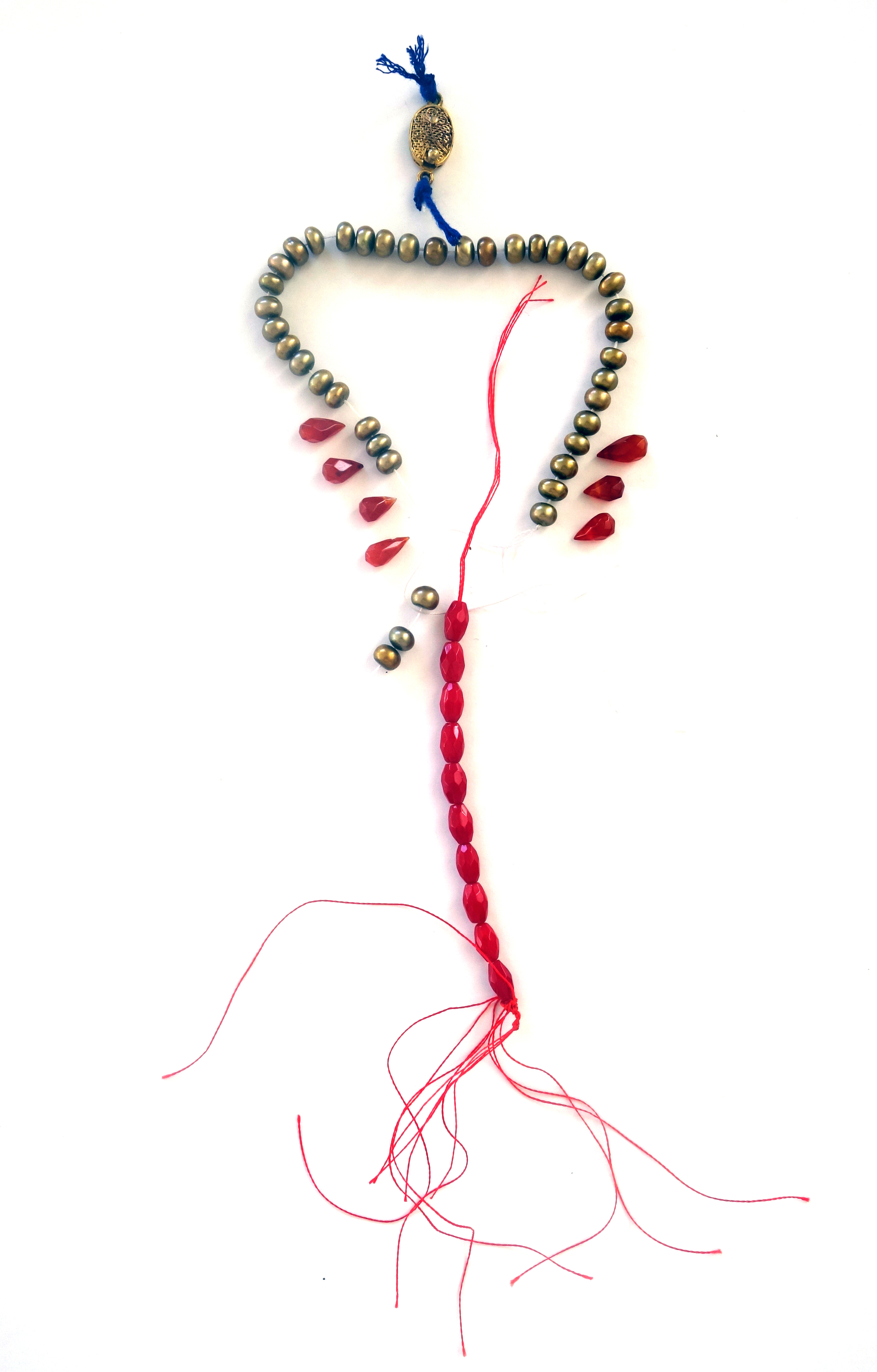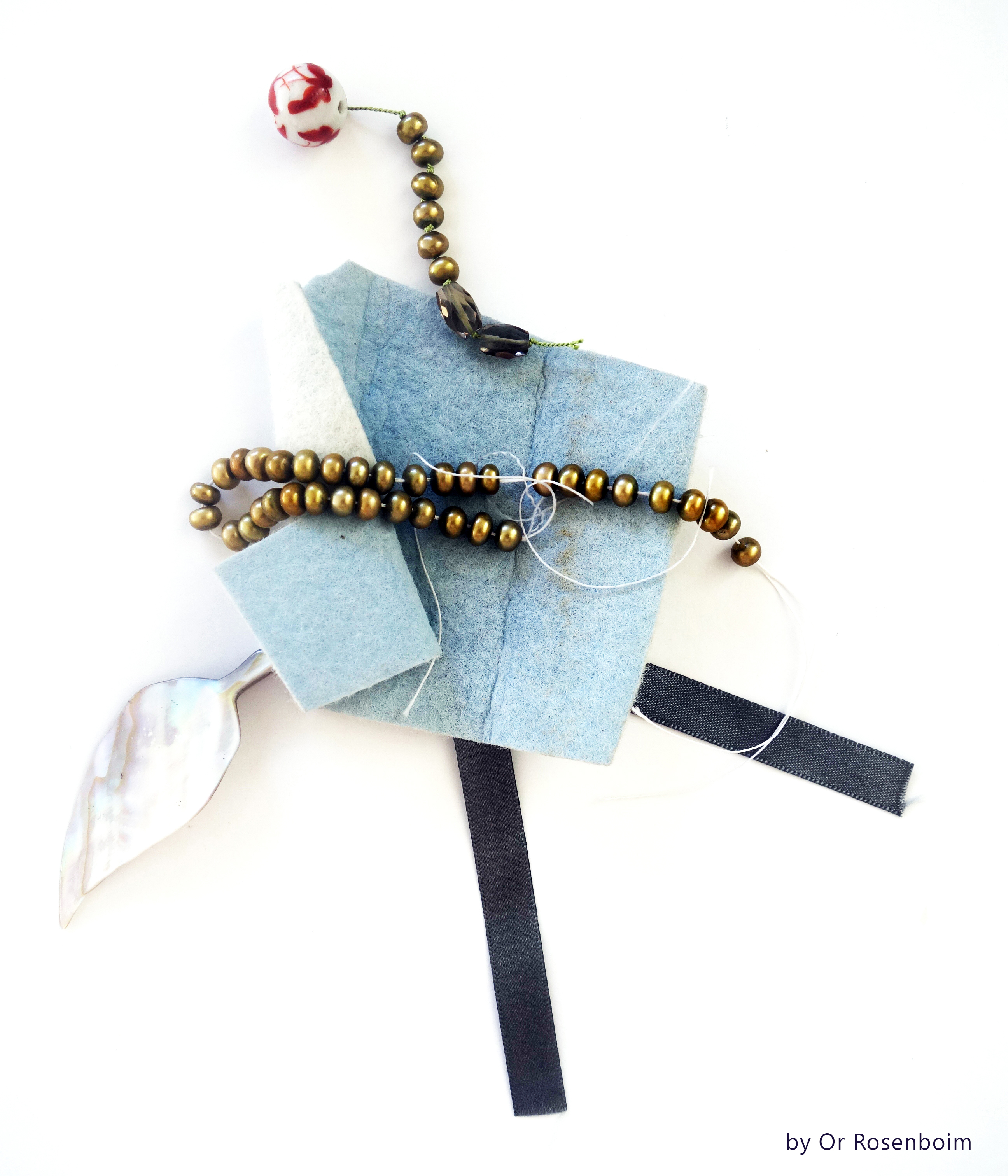 מקטורן קשמיר אפור הזכיר סיפורים על סנט פטרבורג או את עומר שריף בדוקטור ז'יוואגו והוביל ליצירת מחרוזת רקומה מקשמיר, פנינים וחרוזי כסף ולברדורייט. חולצת כותנה אדומה בגוון קוראל עמוק הייתה ההשראה למחרוזת קוראל רקומה על סרט פשתן ג'ינס. אנחנו אוהבות לחוש את חומרי הגלם ביד, את הקרירות הנעימה של אבני החן, את החלקלקות של סרטי המשי, ואת החיספוס העדין של סרטי הפשתן הג'ינסיים.