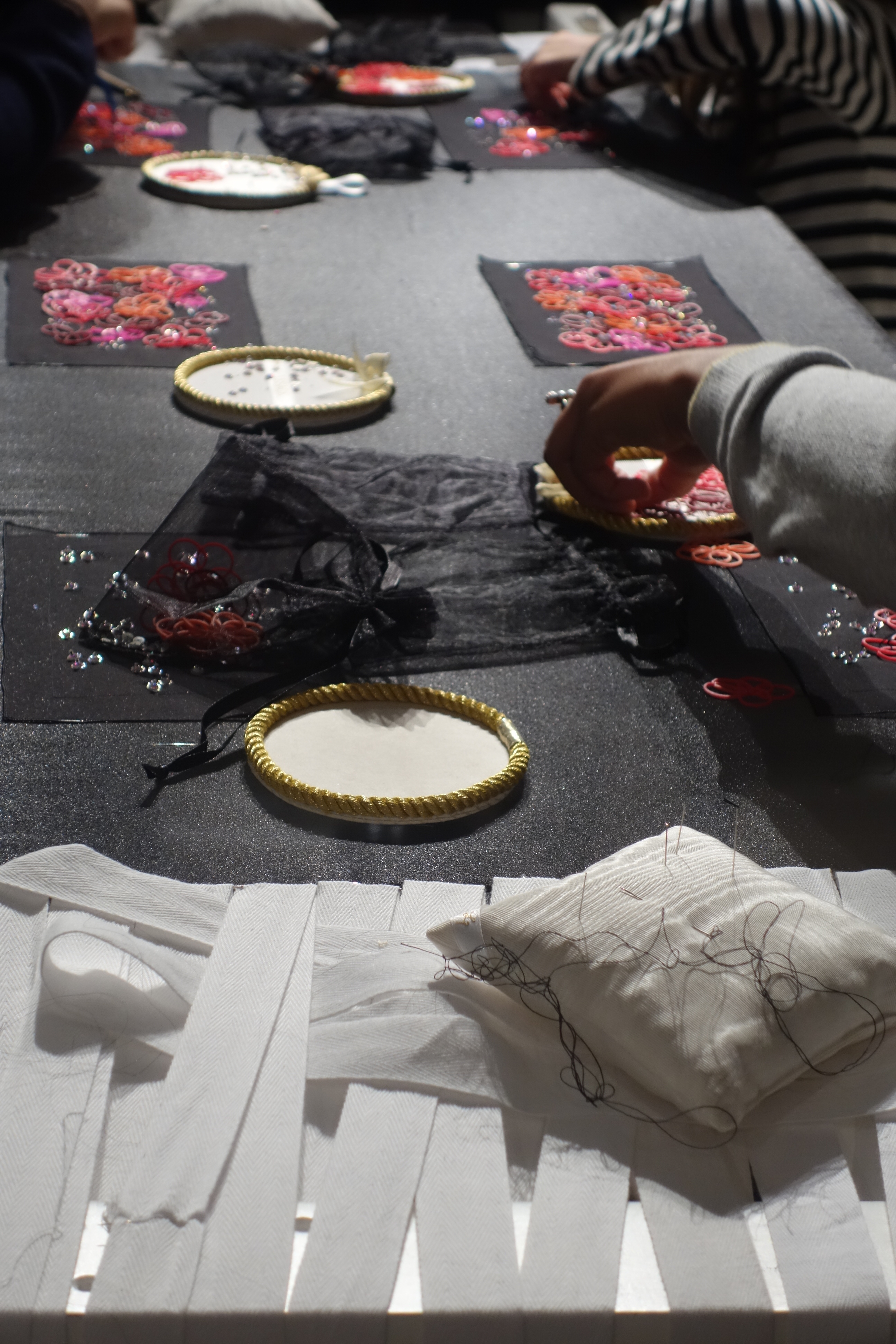 המקום היחיד בו נשבר קיר הריחוק, והסמרטפון חזר לרגע אל הכיס, היה סדנאות היצירה בקומה העליונה. ילדים ומבוגרים ישבו אל שולחנות לבנים וניסו את ידם ברקמת חרוזים, ריקוע, חריזה, ושזירת נוצות, בהשראת בעלי המלאכה המוכשרים שמעטרים את בגדי הערב של שאנל ביד אמן. הסדנאות איפשרו למבקרים להבין דרך הידיים את הייחודיות יוצאת הדופן של בגדי הערב של שאנל, שאינם רק נוצצים או אלגנטיים, אלא נולדו מתוך מסורות ארוכות שנים של יצירה אמיתית ועיקשת.