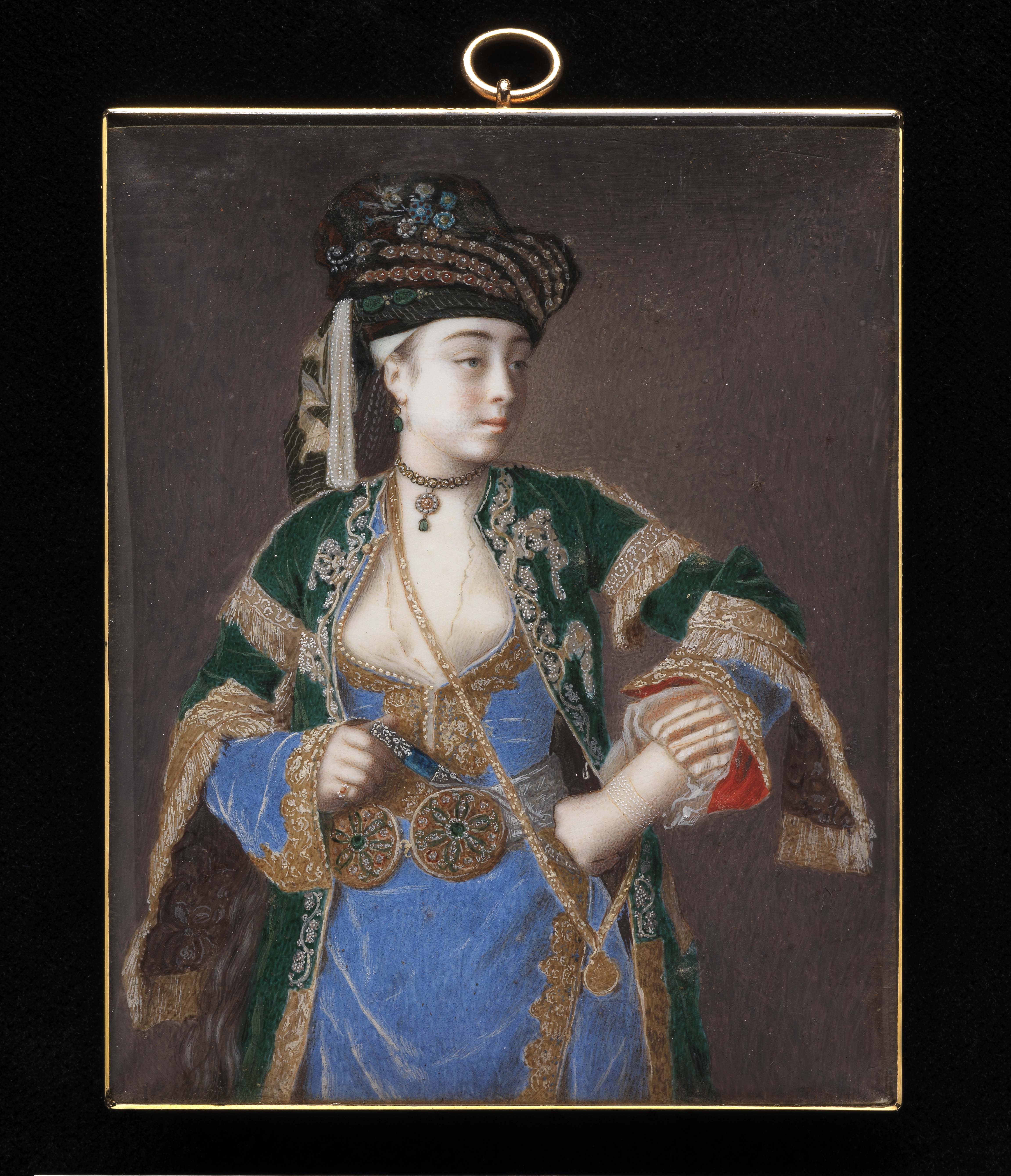 Laura Tarsi, 'A Grecian Lady'. Liotard, Jean Étienne (Swiss, 1702-1789). Watercolour and bodycolour on ivory, height 96 mm, width 77 mm, circa 1745-1749.