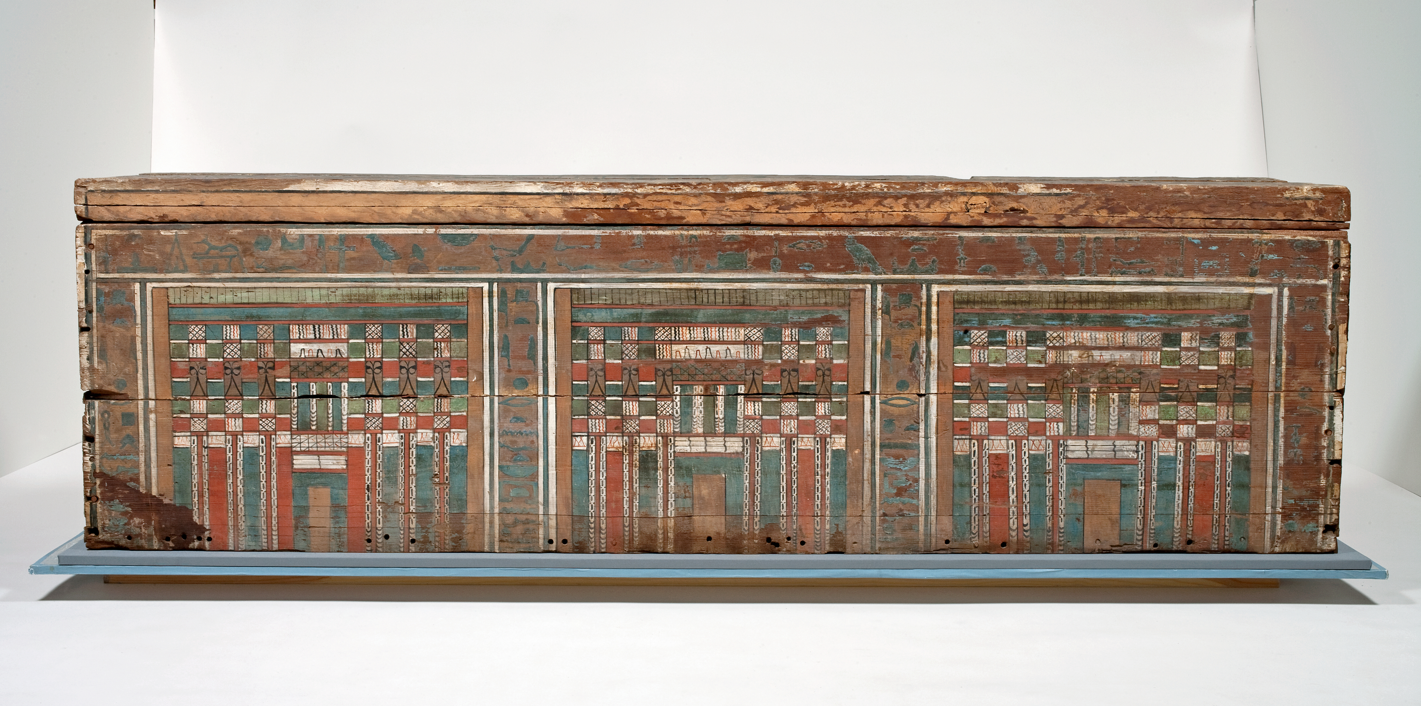 Funerary equipment. Coffin, with lid. Inscribed for a woman with the title 'Lady of the House' called Nakht. The style and texts of this coffin are similar to the outer coffin of Userhet, whose coffin is now in Liverpool. Production Place: Egypt. Find Spot: Beni Hasan Egypt. Twelfth Dynasty; Middle Kingdom, 1985-1773 B.C.