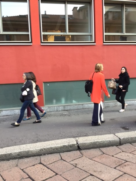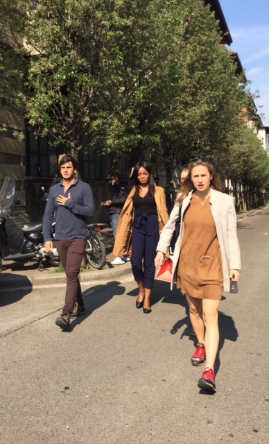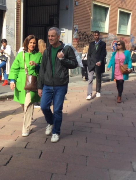 אנחנו התמקדנו הפעם בחיפוש קשר בין סגנון הלבוש של המבקרים לסגנון העיצוב של המוצגים בין אם הם רהיטים, טקסטילים, כלים, חפצים וכו. באמצעות ״צילום רחוב״ אקראי באתרי התצוגות הרבים ניסינו לתפוס במצלמתינו את אוירת הלבוש של המבקרים וקהל שוחרי העיצוב כמו גם של המעצבים והקניינים השונים שגודשים השבוע את מילנו.
