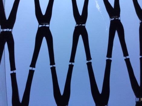 המיצב במילאנו מוכיח שגם לסטנדרטיזציה יש יתרונות, אם משתמשים בה באופן חכם. שם המיצב, ‘linking minds’, מציע לחבר בין אנשים, רעיונות ומוצרים ברחבי העולם דרך מוצרי צריכה סטנדרטים וגלובליים, כמו מכנסי ג'ינס. בזכות הזמינות והעלות הנמוכה, מכנסי ג'ינס הם חומר גלם אידאלי אפילו לבניה קלה. השאלה היחידה שלא נשאלה, ושאנחנו חושבות שחשוב להעלות, היא מי מיצר את המכנסים ובאילו תנאים. האם הג'ינס הזולים והנפוצים גבו מחיר יקר של ניצול מתושבי העולם השלישי? האם חלום המדים העולמיים שהתגשם למעשה במכנסי הג'ינס הביא גם לתוצאה הלא רצויה של משטר ייצור נצלני, גזלני וחסר רחמים? השאלות האלה נותרו ללא מענה, תחת חופת הג'ינס היפה בפלאצו ליטה במילאנו.