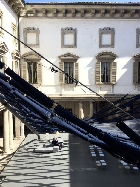 המיצב, בפאלאצו ליטה במרכז העיר, עוצב על ידי סטודיו Diller Scofidio + Renfro מניו יורק, כמחשבה על חלל וגג. חופת המכנסיים בנויה משלוש מאות מכנסי ג'ינס, שתורגמו מעולם האופנה לעולם הארכיטקטורה והפכו ליחידה עיצובית במתחם האורבני. המכנסים המחוברים הם אנונימיים – לא ידוע שם המותג והיצרן. אך כמכלול, יש להם כוח לשנות את הסביבה העירונית בחצר המבנה האלגנטי.