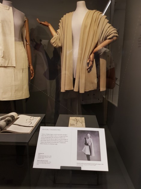 האוצרים כותבים בהתפעלות מסוימת על חליפת צמר טוויד מחויטת, שהיא נתפרה לפי מידה בהזמנה מיוחדת. הם מתארים את תהליך העבודה, הדורש עד שלושה חודשים של הכנה ועד שלוש פגישות למדידה. זהו כמובן עולם הולך ונעלם, בניגוד מוחלט לאופנה המהירה של ימינו. אך לא מדובר בפרקטיקה שנכחדה לחלוטין ומקומה רק במוזיאון. גם היום, יש מי שיכולה להנות מבגדים תפורים לפי מידתה, ולא רק בבתי אופנה פריסאיים.