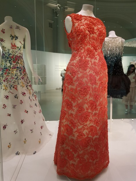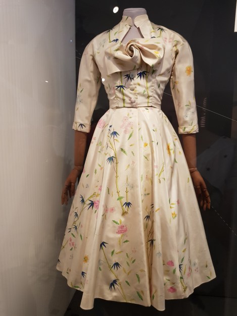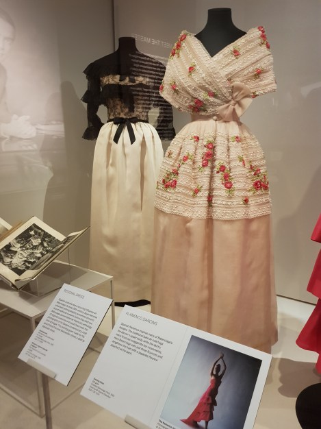 התערוכה הלונדונית מוצגת בחלל המוקדש לאופנה במוזיאון הגדול. הבגדים מוצגים בצפיפות מה, ולצידם מסמכים, צילומים, פיסות בדים וצילומי אקס ריי, שאמורים להעניק קונטקסט לבגד. גם תיאורים של הלקוחות, ומכתביהן לבית האופנה המפרטים הזמנות של שמלות לפי מידה, מספקים הצצה לאופן הפעולה של בית האופנה הפריסאי.