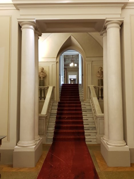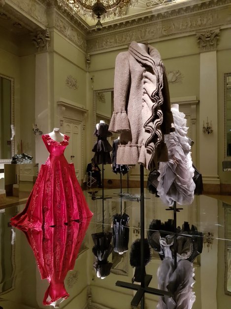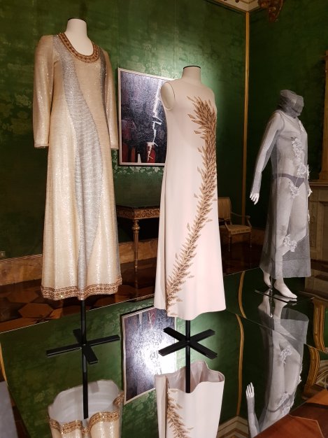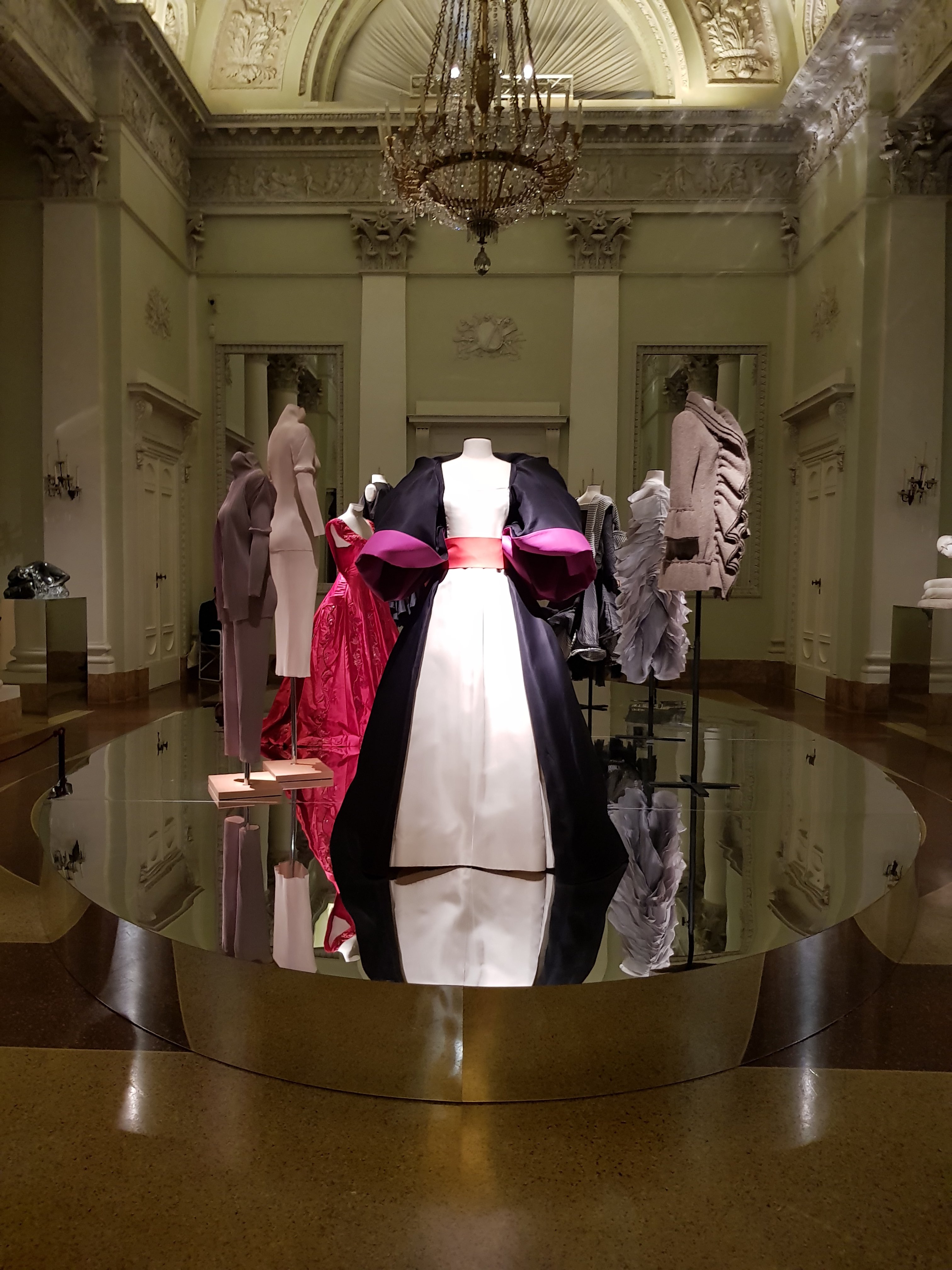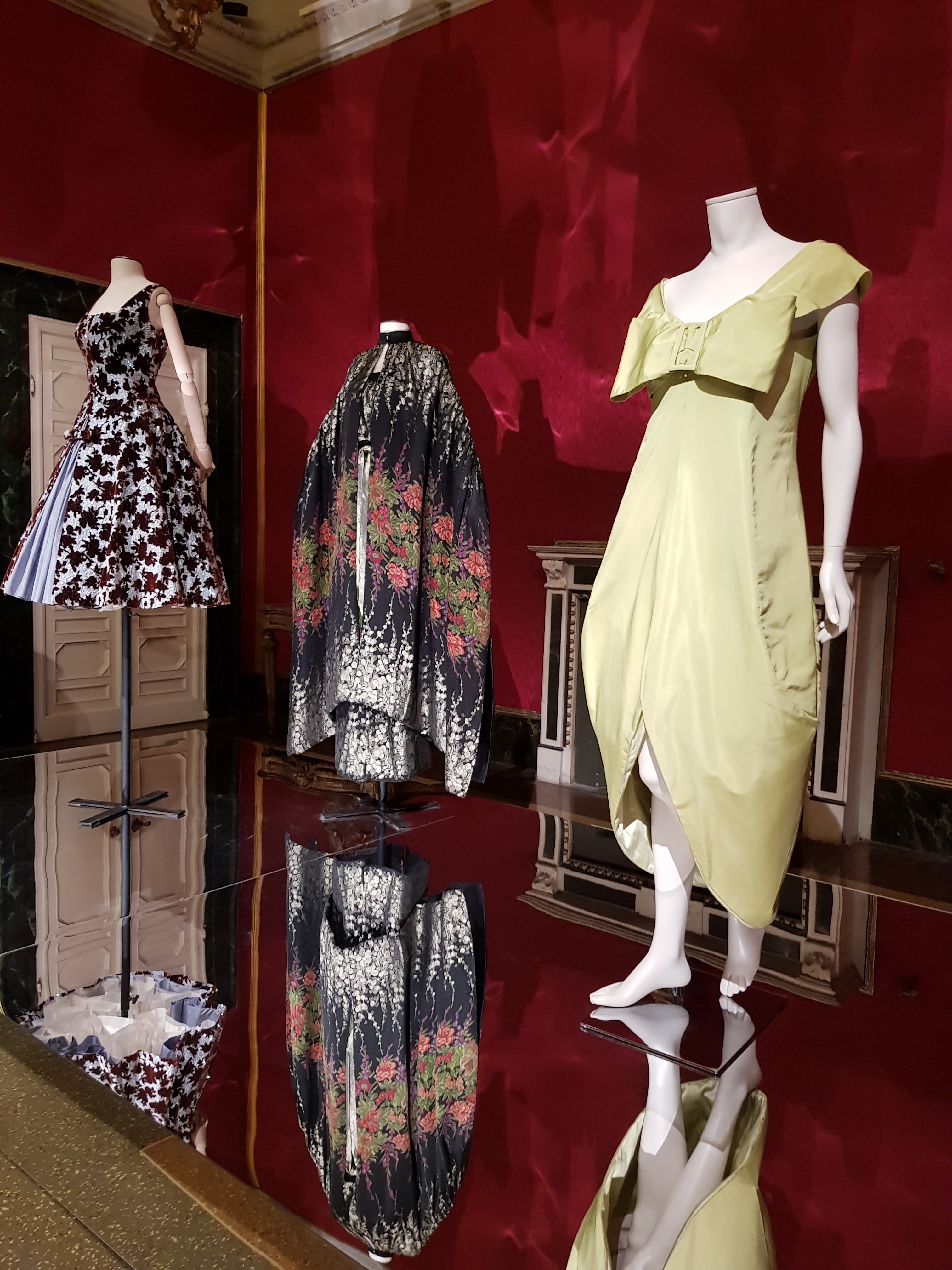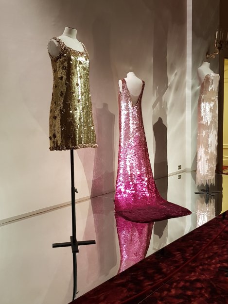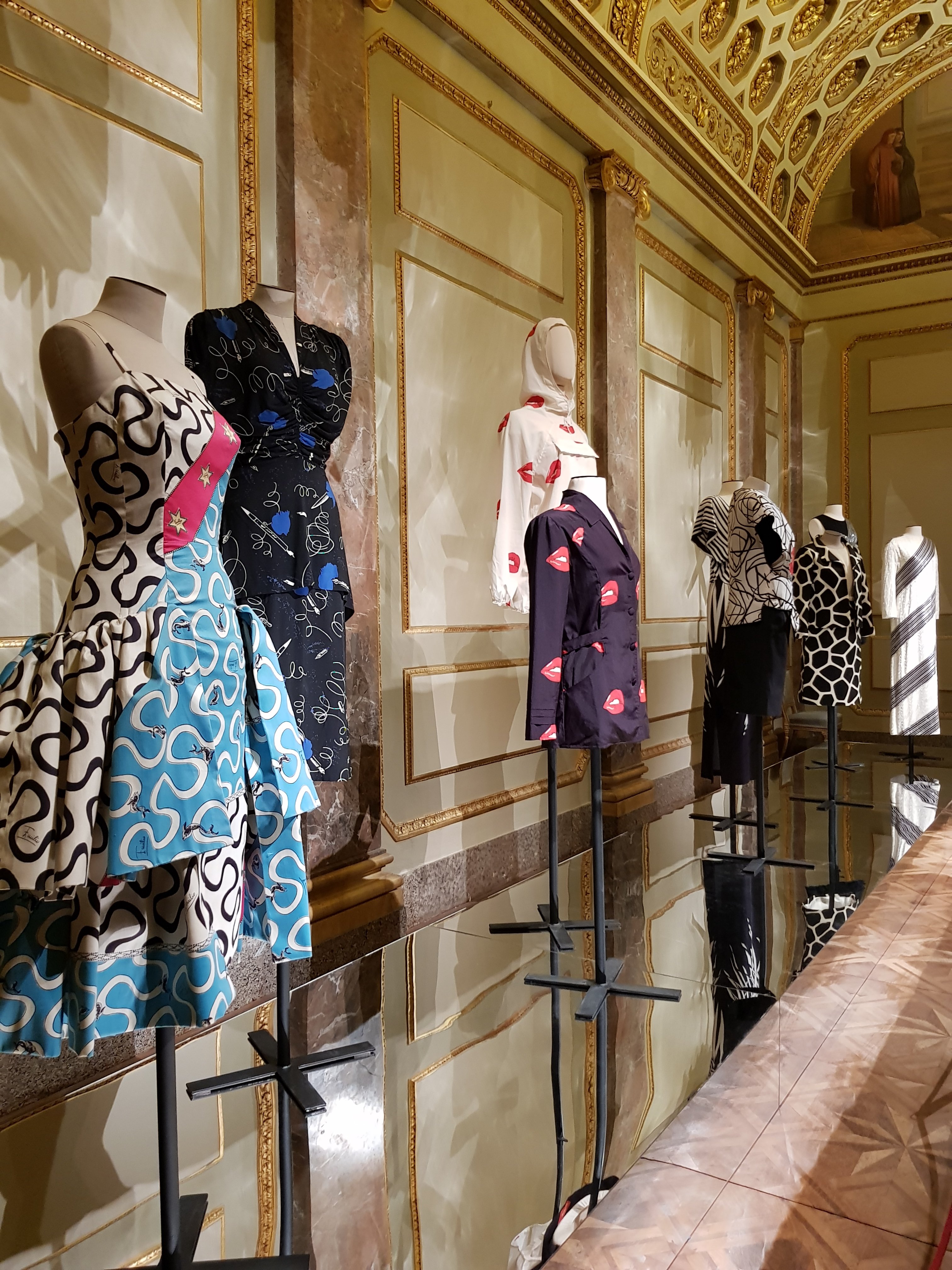 בניגוד לתערוכות אופנה מודרניות, המוצגות בחללים המינימליסטיים והחדגוניים של מוזיאונים גדולים כמו מומה בניו יורק או המוזיאון לאמנות דקורטיבית בפאריז, פה הבגדים מוצגים בתוך החדרים המפוארים והמרשימים: ציורי קיר, טאפטים ממשי, שטיחי קטיפה ורהיטים מהודרים ממלאים את חלל המוזיאון ומתחרים בשמלות. למרות החשש הראשוני, המוצגים לא נעלמים בחלל, אלא דווקא משתלבים בעושר היצירה האנושית ומתגברים כך על הסטריליות של המוזיאונים המודרניים, שקירותיהם צבועים לרוב בשחור או לבן ׳נקיים׳.