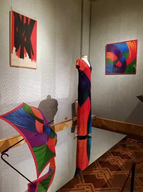 התערוכה המוצגת עכשיו במוזיאון המתחדש מדגישה שני אלמנטים משמעותיים בחיים החדשים של המוזיאון: אופנה איטלקית, והקשר בין אמנות לאופנה. סדרות הבגדים מאורגנות לפי תמה אבסטרקטית מעולם האמנות, ולצידן יצירות אמנות שקשורות בה: גיאומטריה, שכפול, חיתוכים, אופ-ארט ועוד. כך מנסים האוצרים, במידת הצלחה משתנה, לקבע את הקשר בין אופנה לאמנות כשני תחומים המשתנים במקביל, ומושפעים משינויים חברתיים ותרבותיים רחבים. לא תמיד ברור הקשר בין היצירות, אך אולי זהו חלק מההצלחה של התערוכה המעודדת את המבקרים לדמיין ולחשוב על אופנה מעבר לצורה ולאסתטיקה הברורה של הבגד.