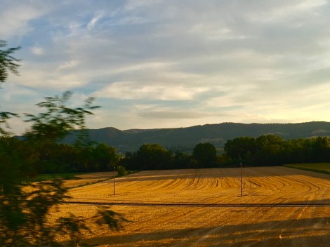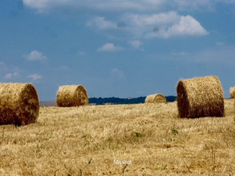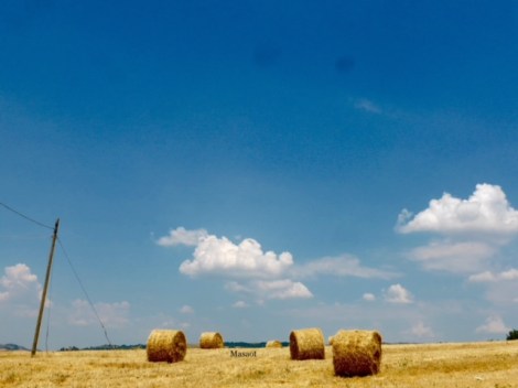 גם באיזורים החקלאיים טרקטורים פעלתנים כבר קצרו את אחרוני שדות החיטה והותירו על הקרקע פלומה קצרה וזהובה. עליה מונחים גלילי ענק זהובים שנותרו להתייבש בשמש החמה. ממש כמו גן פסלים, משנים את פני הנוף עד שיאספו למתבנים.