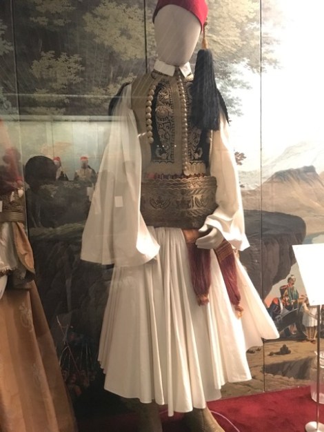 במשך ארבע מאות שנים, יוון נשלטה בחלקה על ידי האימפריה העותומנית. רק במאה התשע עשרה, עם הקמת הממלכה היוונית, האימפריה הבריטית פרשה עליה את חסותה באופן לא רשמי, ו״הצניחה״ על יוון מלך: נסיך בווארי צעיר בן שמונה עשרה בשם אוטו. משפחות האצולה הגרמניות נודעו כספקיות עיקריות של מלכים לאירופה, ולכן בעיני הבריטים (שגם בראשם משפחת מלוכה ממוצא גרמני) לא הייתה זו בחירה יוצאת דופן. אלא שאוטו לא נהנה מאהדת היוונים, ושלט באמצעות יועצים שבנו את המדינה הצעירה באמצעות הלוואות ענק מבנקים בריטיים. כדי להתחבב על נתיניו אימץ הנסיך אוטו שם יווני, אותון, ואת התלבושת העממית הפופולארית של חצאית הכותנה הלבנה המכונה Foustanela שהתקצרה בגרסה היוונית עד מעל הברך, חולצת כותנה/טוניקה לבנה בעלת שרוולים רחבים ומעליה בולרו רקום או מעיל בסגנון צבאי היסטורי בעל כפתורי זהב מצמר כחול בחורף או חאקי בקיץ. לרגליו נעל קבקבי עור בעלי סוליית מתכת המשמיעה רקיעה בזמן הצעידה עם פונפון וגרביון צמר בגוון שמנת. התלבושת אומצה גם על ידי גברי חצר המלוכה והצבא.