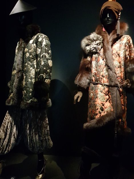 חלק מהמוצגים נראים ממש כמו קריקטורה: מעילים רקומים מבריקים, עם כובעים משולשים וצמה מייצגים את סין. קימונו מינימליסטי או מוטיב של עיגול אדום על רקע שחור מיצג את יפן, ואילו רקמות חרוזים עשירות ושמלת מעטפת בסגנון סארי מייצגות את הודו, לצד מגוון תכשיטים ואביזרים תואמים.