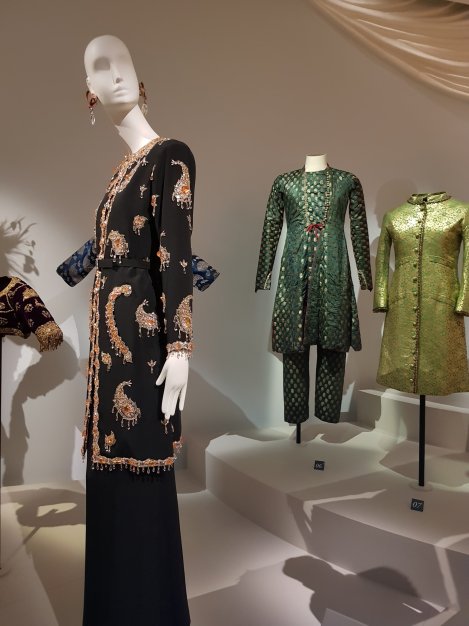 התערוכה שמוצגת עתה במוזיאון – "אסיה כפי שנחלמה על ידי סן לורן" – חוקרת את מקורות ההשראה האסייתיים של סן לורן. היא נפתחת בציטוט של המעצב, שטוען שמילדות הוא היה יוצא למסעות בארצות רחוקות דרך ספרי תמונות, ציורים וחלומות, כך שלא היה לו כל צורך לבקר שם באמת. את הודו, יפן וסין הוא כבר ראה בעיני רוחו, והם היו מקור השראה משמעותי ליצירה שלו.