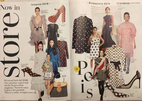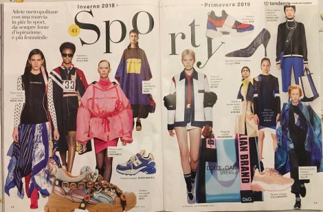 מוסף io donna של העיתון קוריירה דלה סרה, היוצא בבירת האופנה האיטלקית מילאנו השקיע בפרויקט מיוחד של עשר כפולות עמודים עם שלל צילומי יחסי הציבור של בתי האופנה השונים המסודרים לפי הטרנדים החזקים שעורכי העיתון קבעו לעונות החורף והאביב 2019: נקודות, נחשים, ספורט וכסף מככבים, לצד ג׳ינס, חברבורות ופרנזים. ועל טרנד הפליסה, הרי שכבר כתבנו עליו פה.