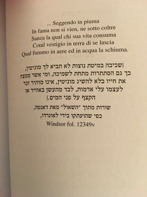 הקריאה בספר, אשר מעניק מבט עשיר בפרטים יומיומים על חיי לאונרדו, העבירה אותנו לזמנים אחרים יחד עם הנופים הכפריים הנשקפים מחלון הרכב, היצירות שמצאנו בדרך והארמונות של פירנצה שנותרו עדים דוממים לעידן מפואר. לרגע דימיינו את לאונרדו פוסע ברחוב הסמוך בדרכו לסדנא של ורוקיו.