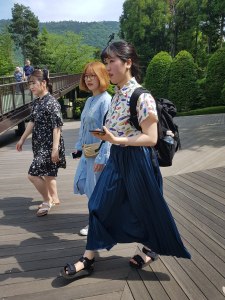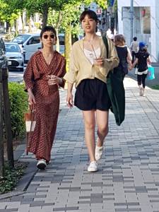 טוקיו ענקית, וכמו לונדון מאגדת בתוכה ערים קטנות שונות מאוד זו מזו, אבל לעומת לונדון היא יותר גבוהה, יותר מקושרת, יותר מהירה ואינטנסיבית. יצאנו לטייל ברחובות העיר כדי להתרשם מהסגנון המקומי, מהאווירה ומהסטייל האישי של התושבים המקומיים. ברכבת התחתית, ברחובות ובבתי הקפה, במסעדות הסושי ובברים, אנשים לבושים באופן מעניין, ייחודי ואישי. ראינו יותר בדים מעניינים מאשר בלונדון, עם נוכחות בולטת של בדי פשתן מקומטים בצבעים טבעיים. ראינו לבוש א-סימטרי, רחב, שמאתגר את הסגנון המינימלי העכשווי בבירות המערב. ראינו אביזרים מוקפדים, נעליים צבעוניות, כובע או תיק יוצאי דופן שהציעו אלטרנטיבה לאופנה המהירה המוכרת מהרחובות הראשיים של ערי העולם. שמשיות ממלאות את הרחובות, בידיהן של נשים המנסות להתחמק מקרני השמש האביבית. מדי פעם, ראינו גם נשים לבושות בקימונו מסורתי, פוסעות בצעדים מדודים בסנדלי עץ. אולי המתח הזה בין המודרניות הקיצונית ללבוש מסורתי, שנראה כמעט מפתיע בנוף האורבני, הפך את העיר לקסומה כל כך בעינינו.