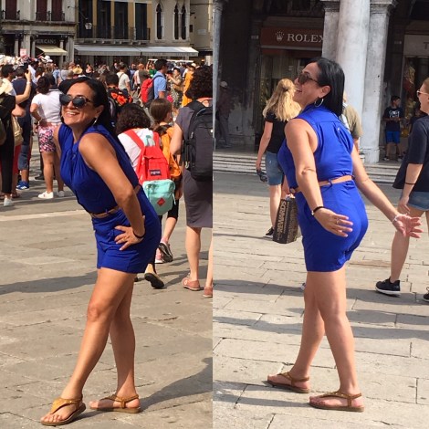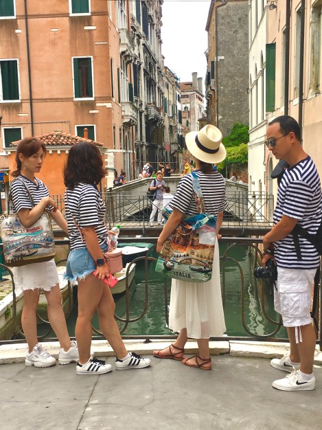 נראה שהמחשבה על התיעוד האישי והפומבי מעודדת את המבקרים להשקיע בחזותם באופן מיוחד, לא פעם הרבה יותר ממה שאנו מורגלים לחזות ברחובות ערים אחרות. הקוסמופוליטיות של הלבוש מזכירה לרגע ציורי רחוב ונציאנים עתיקים בהם נראו סוחרים, יורדי ים ומבקרים מארצות שונות עוטים תלבושות מגוונות: אפריקנים, ערבים, טורקים… למראה מגוון האנשים והבגדים היום נראה שונציה האיטלקית שבה לידיהם של אנשי העולם.