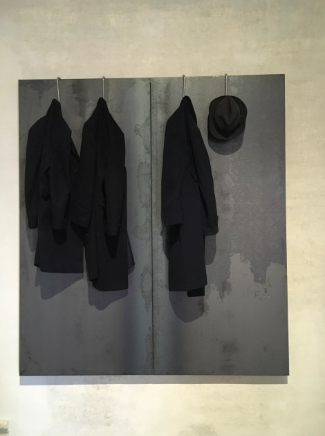 המייצבים בחלקם מוכרים בשפתם הייחודית לקונליס מוצגים בחלקי הארמון השונים ומייצרים דיאלוג מעניין עם הדקורציה הדקדנטית של פיאנו נובל למשל. על ריצפת העץ הממורקת מול ציורי הקיר של סלון מהמאה ה-18 מונחים בסדר בגדי גברים חדגוניים באנונימיות שלהם בגוונים של שחור וכחול כהה, נעליים משומשת, כובעי לבד כהים, כל כך אנושי ואוניברסלי.