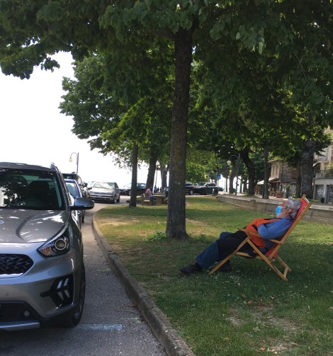 הטיול באי, בחורשות טבעיות ומוצלות לאורך החופים הכחולים, היה שיטוט איטי ללא מטרה. בדרך זכינו לגלות ארכיטקטורה ספונטנית של מבני אבן מקומית ישנים וכמה סמטאות ציוריות. לפני ששבנו הביתה במעבורת של הערב, עוד הספקנו לשבת ישיבה בטלה בבית קפה קטן שגינה ירוקה מובילה ממנו אל גדות המים לאור בין הערביים, ואנחנו הסתפקנו בזה.