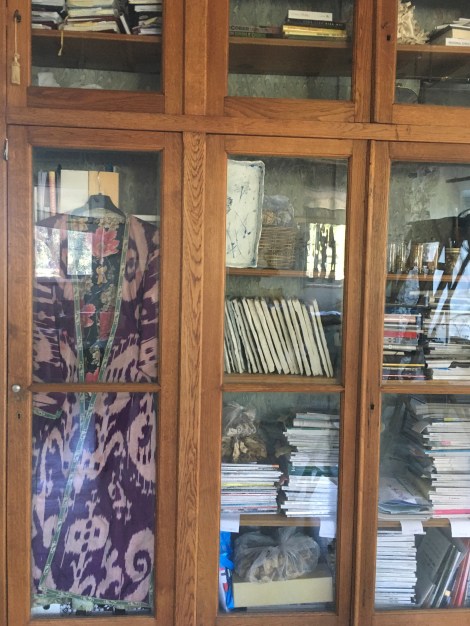 מאחורי הזכוכית של אחת משלושת הדלתות של הספריה שמור חפץ מעורר השראה: מעיל עתיק שהיגר עם המשפחה, וסגנונו מתוארך למאה התשע עשרה. מעיל מסוג המעילים העליונים שנהגו ללבוש הגברים מסמרקנד מעל הבגדים, עם או בלי חגורה של עור מאובזרת באבזמי כסף שנכרכה באזור המותן.