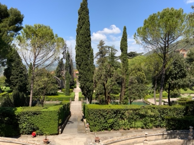 שיטוט שליו בגנים הדוממים הוא פריבילגיה של שקט נדיר המאפשר להקשיב לרחשי המים הזורמים בבריכות במפלים ומזרקות (הגנים בעידן טרום הקורונה עמוסים בתיירים רעשנים). בשלווה הזו דימיינו זמנים אחרים בהם הוילה וגניה רחבי הידיים היו מעון פרטי של קרדינל איפוליטו ד’אסטה מושל טיבולי. מעיון בביוגרפיה שלו נראה שהוילה שימשה בערוב ימיו מפלט מחיים פולטים מורכבים ועמוסים בין פרארה עיר הולדתו לחצר מלכי צרפת, סיינה, מילנו, רומא והאכזבה שנחל כשלא התקבלה מועמדותו למשרת אפיפיור ב-1550. הוא חשק במעמד האפיפיור גם בגלל שסבו רודריגו בורג’ה, גם היה אפיפיור ופטרון אמנות בשיא הרנסנס ברומא, שהעסיק את רפאלו, מיכלאנגלו, ברמנטה ופינטוריקיו שאף צייר את קירות הדירה שלו בותיקן .