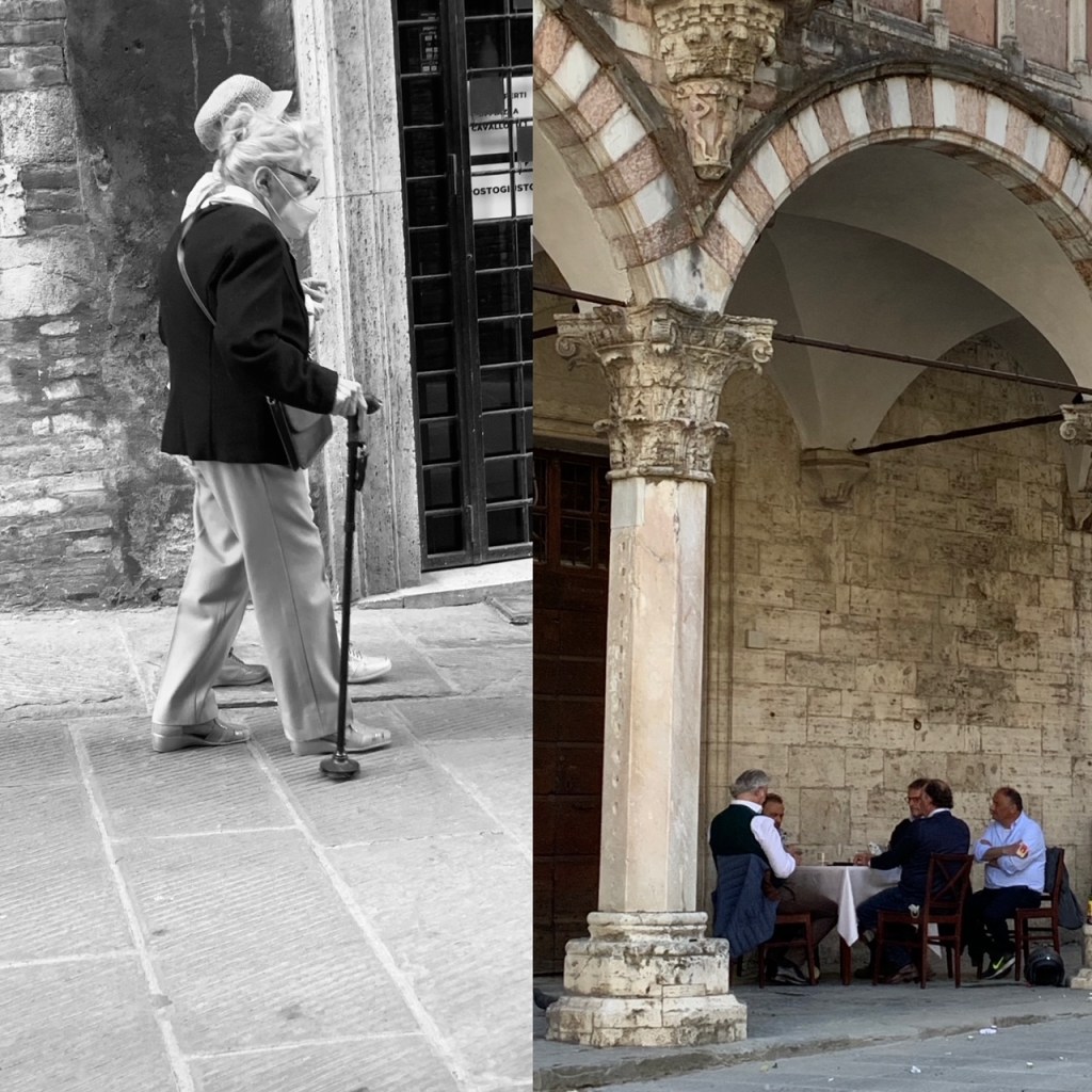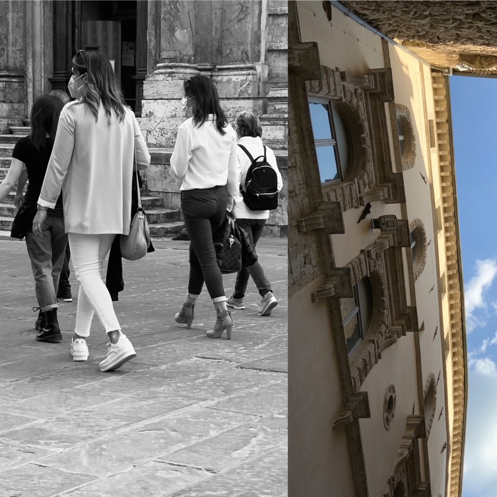 מעניינת גם ההשפעה של אוסף המבנים המקיף את הרחובות שבהעדר תנועת מכוניות הם רגועים ושקטים מהמקובל בערים. אפשר לראות את היחודית של כל מבנה ולהבחין בהרמוניה הארכיטקטונית בין תקופות הבנייה השונות. בין שרידים אטרוסקיים, מבנים מימי הביניים, או רנסנס, ועד המאה התשע עשרה, העיר מעידה על היחס המכבד שנתנו הארכיטקטים המקומיים לאלו שקדמו להם ושמרו על המשך רצף אסתטי של ארמונות מעוטרים, כיכרות ,וקתדרלות שניצבים כאן ארבע מאות שנים. הם ראו את בגדי העוברים ושבים מתחלפים במהלך המאות והם עדיין כאן כתפאורה דוממת בגוונים טבעיים של אבן ושיש שמכבדים את האדם והטבע ומשיבים ברכות את אור השקיעה הורדרד אל עבר הרחוב .