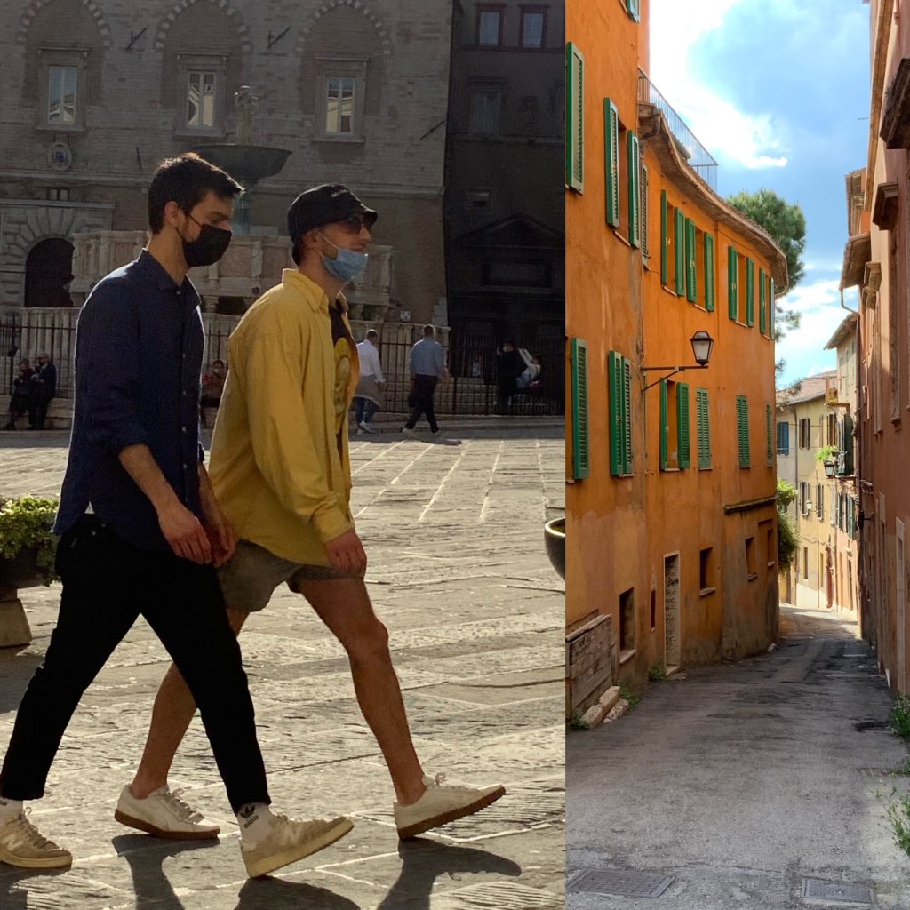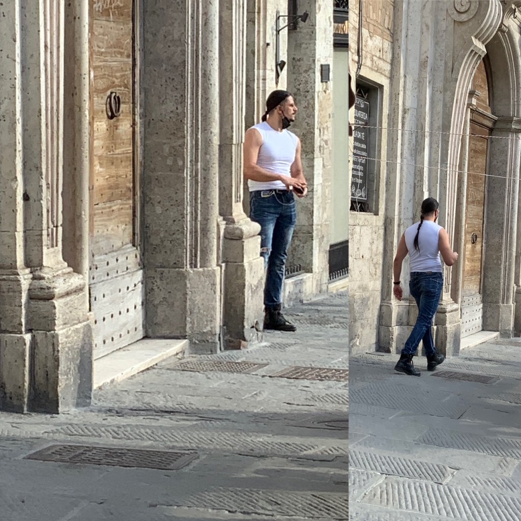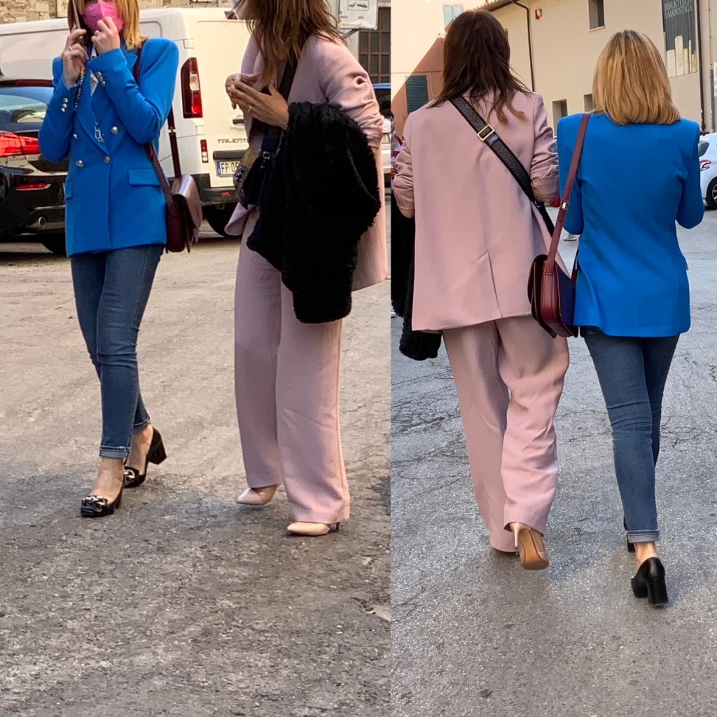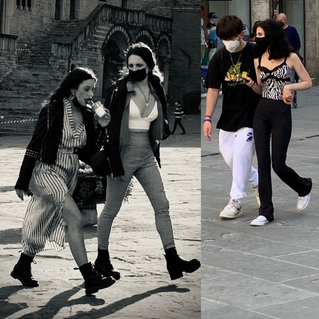 גם אנו שבנו לשוטט, לצלם ולשתף אתכן ברשמינו מהשינויים במרחב העירוני איטלקי פוסט לוקדאון. קשה לומר שהמקומיים זרקו על עצמם משהו ויצאו מהבית באופן מרושל. אולי אפילו ניתן לומר שהחזרה אל הרחוב מלווה בהקפדה על פרטים. התרשמנו מטרנד הסניקרס הנוכחי שמקבל כאן פרשנויות אישיות. הבחירה איננה נופלת בהכרח לבנאליות של מותגים נפוצים, הנעליים הספורטיביות מסוגננות למדי ומוסיפות קלילות לבגדים מחויטים מאריגים. זה חיבור מומלץ שיוצר עניין בניגוד למשל לחיבור בנאלי של נעל ספורט עם טייץ או טרנינג.