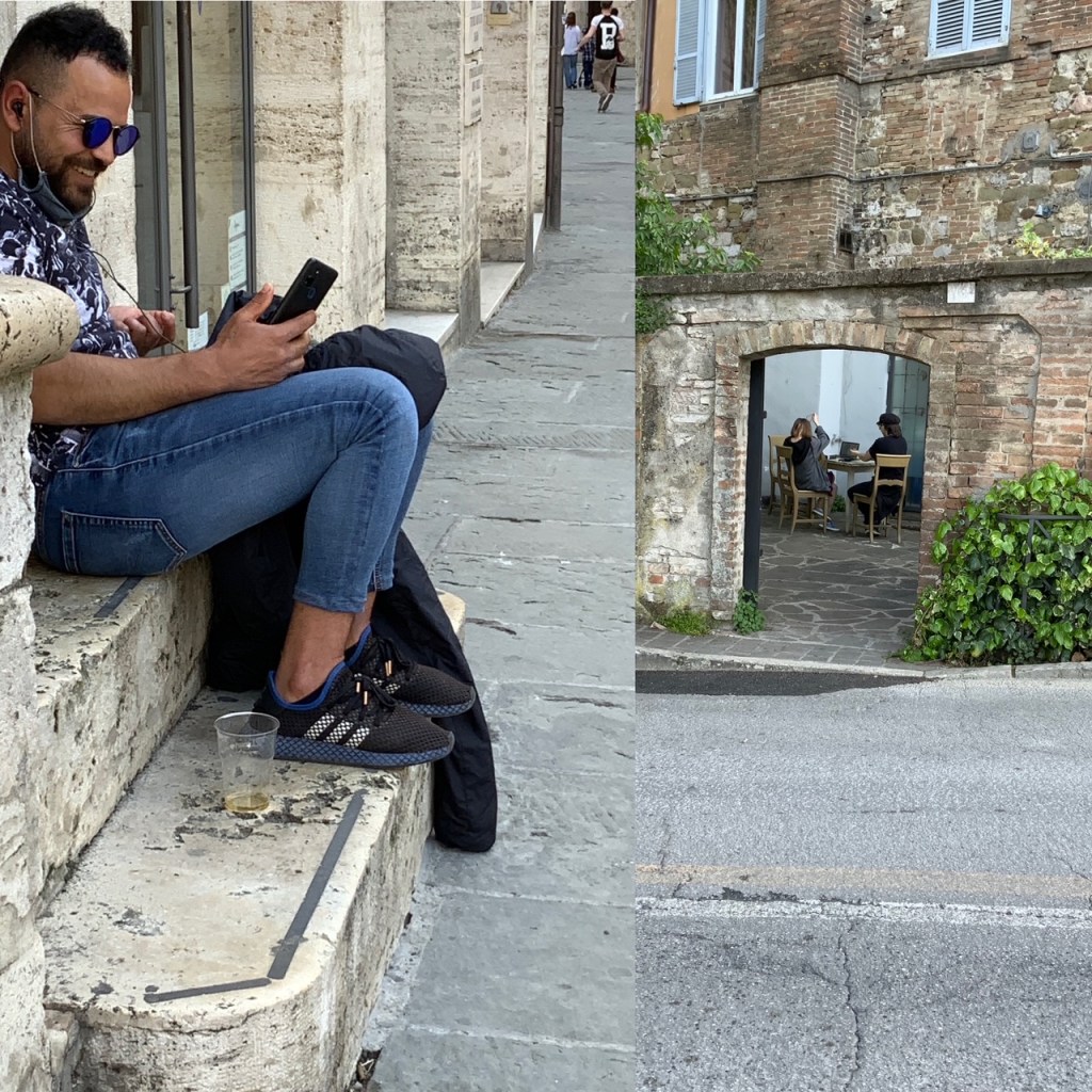השבוע האביב הגיע. תושבי הערים באיטליה החלו לצאת מהבית, וחידשו את מנהג ה״פסאג’אטה״ האיטלקית המפורסמת (אמנות השיטוט הנינוח), את המפגש החברתי בבתי הקפה ששבו לפעילות, ואת האכילה במסעדות שנפתחו מחדש (אבל רק בשלחנות ערוכים באויר הפתוח או בגינה).