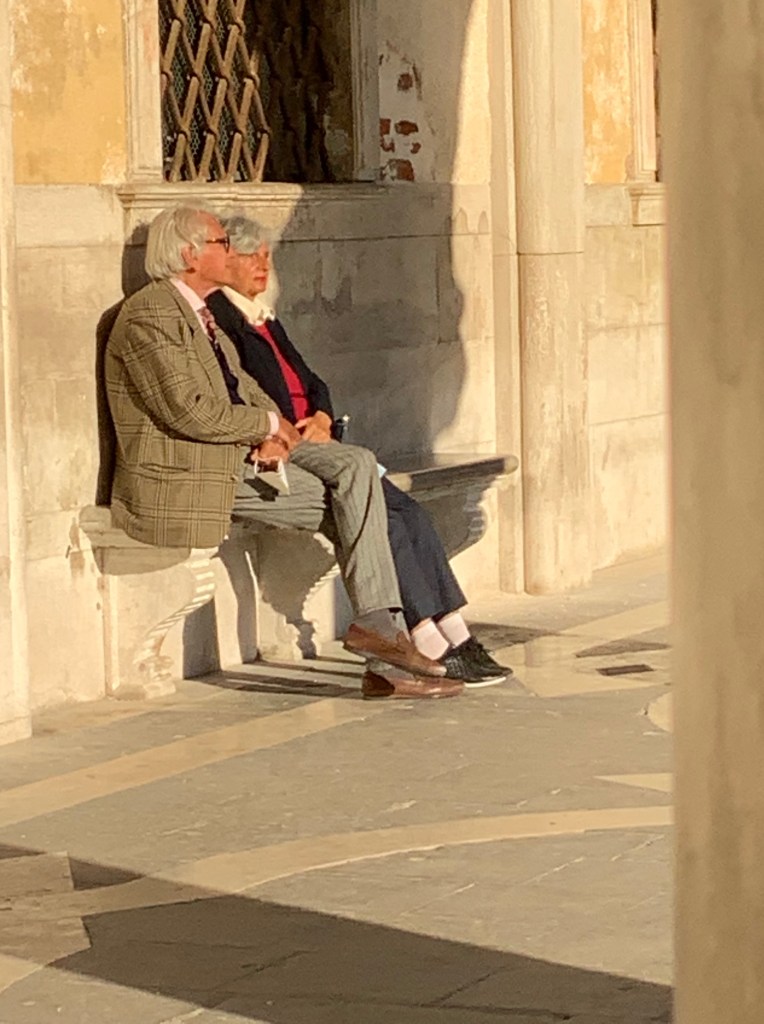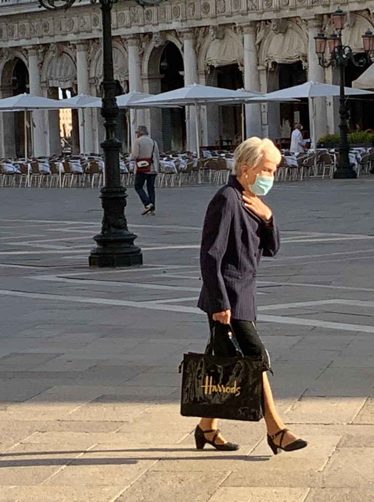 ״הולכי-על-שתיים מאבדים את הראש בונציה בגלל בגדים וקניות מטעמים שהם לא רק מעשיים; הם עושים זאת כי העיר, כביכול, מאתגרת אותם. כולנו מטפחים בחשאי סברות על פגמי האנטומיה וההופעה שלנו, על האי-שלמות של חזותנו. ומה שהאדם רואה בעיר הזאת על כל צעד ושעל, בכל פנייה, בכל מפתח של שדה הראייה ובכל מבוי סתום, עוד מחמיר את התסביכים ואי-הבטחון שלנו. לכן הכל – בייחוד נשים, אבל גם הגברים – מתנפלים על החנויות מיד בהגיעם, ובחמת נוקמנות. היופי שמסביבך כה עצום, עד שתיכף ומיד מתעוררת בך תשוקה חייתית, שאינה ממין העניין, להלום את היופי הזה, להשתוות אליו. זה לא קשור בגנדרנות-הבל או בגודש האספקלריות שכאן, שהוא תכונת המקום, והעיקרית שבהן המים עצמם. זה כך, פשוט, מפני שהיא מעניקה להולכי-על-שתיים מושג על אודות איזו עילאיות חזותית שאינה מצויה במאורותיהם, בסביבתם השגורה. לכן פרוות נחטפות כאן, וכן משי, פשתן, עור קטיפתי, צמר, כל האריגים למיניהם. וכאשר כל הברנשים האלה חוזרים הביתה הם בוהים בכל זה ונדהמים למראה הקניות שעשו, בידיעה ברורה שלא יוכלו להתנאות בכל הרכישות האלה בלי לזעזע את הילידים. אין בררה, תצטרך להניח להם לדהות ולנבול בארון הבגדים שלך, או לתת אותם במתנה לקרובי משפחה צעירים.״