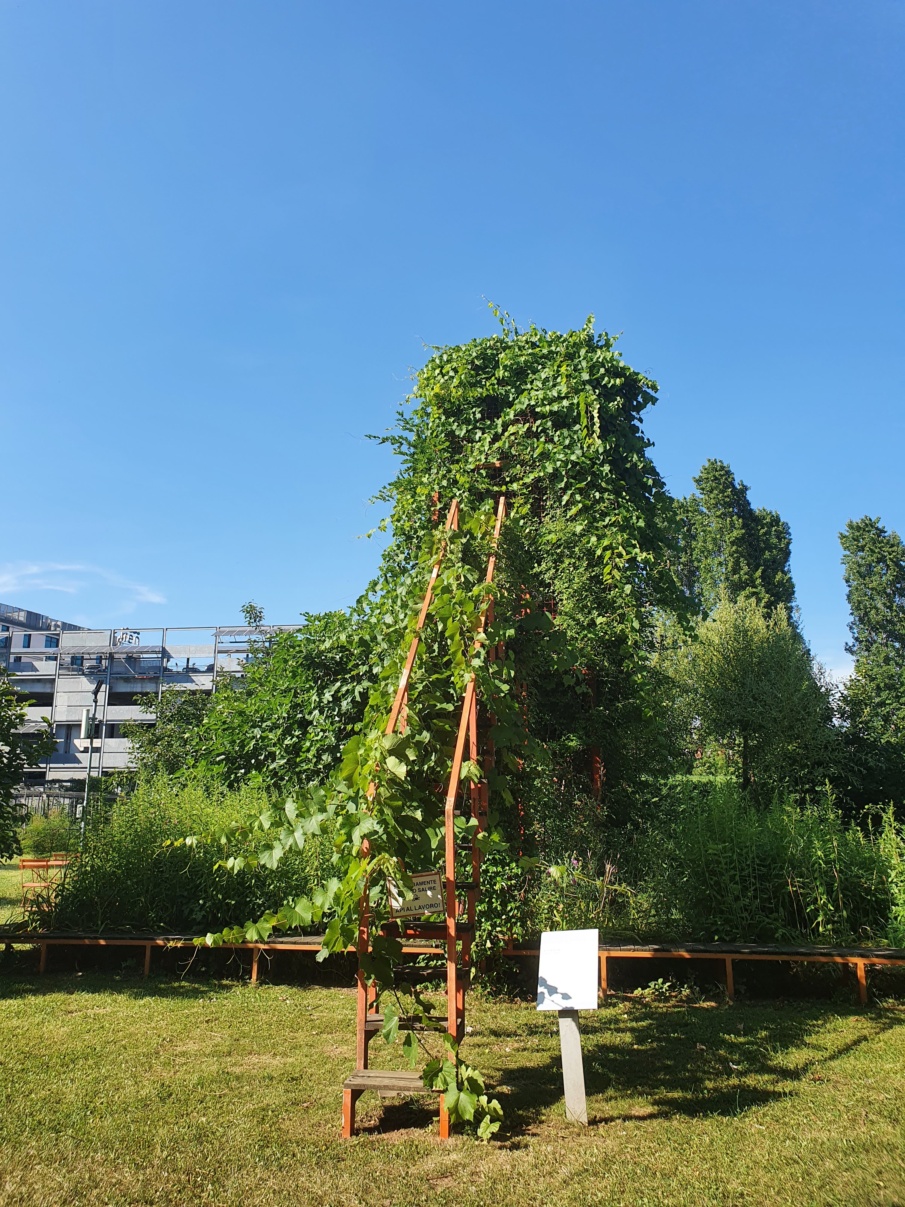 האמן האיטלקי אנדראה מאנייני יצר מיצב אבסטרקטי שנועד להתחיל דיאלוג מיסטי בין האדם לטבע. הוא הקים פסלים מברזל וגבס ובהם נטע צמחי גפן ותות. מדי חמש דקות, הפסל מביע שאלה – בתנועות בינאריות ובמוזיקה במפתח דו – בציפיה שהצמח ׳יענה׳ עליה בדרכו.
