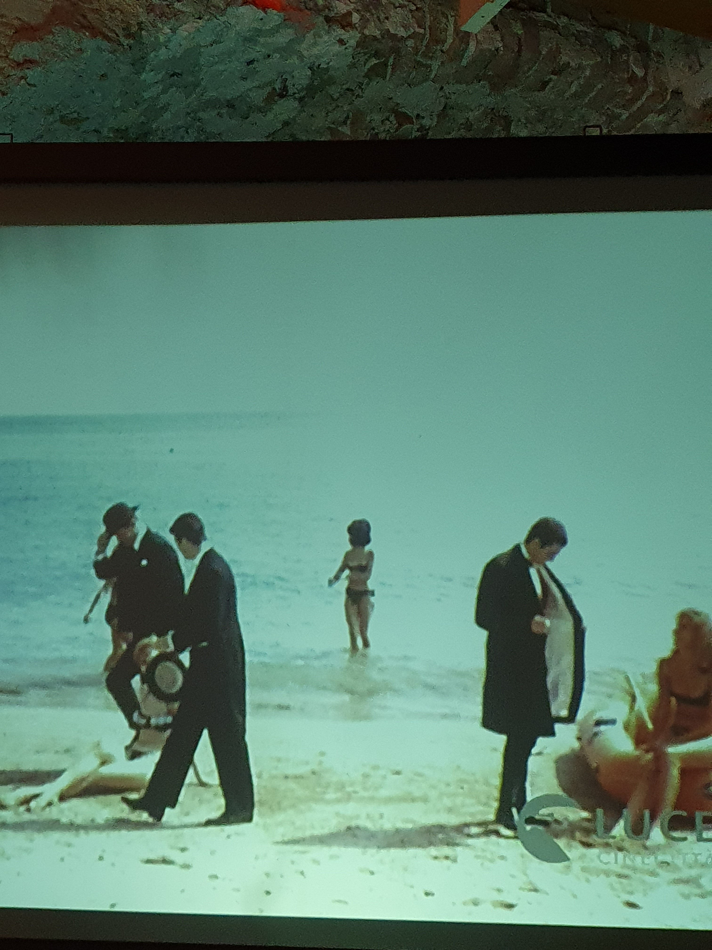 הנשים לבשו שמלות בהשארת פרחים, חלקן מעוצבות על ידי מעצבים מקומיים, ואילו לגברים אירגנו ׳שבוע האופנה׳ שהתחרה בשבוע האופנה הנשי במילאנו. החלק הבלתי צפוי ביותר בתערוכה הוא סרטון וידאו שמציג את החידושים האחרונים באופנת הגברים בשנות השישים, עם דוגמנים חטובים בחליפות שמטיילים בחינניות בין בחורות בחוף. אולי היום צילומים כאלה היו מעוררים אי נחת בחוסר המודעות הפמיניסטית שלהם. אבל אפשר לראות בסרטון גם בדיחה גרוטסקית על הפומפוזיות מלאת החשיבות של אופנת הגברים האיטלקית, שמלבישה אותם בחליפה מחויטת גם בחוף הים בשיא הקיץ. מעניין אם גם אז הסצנה נראתה מגוחכת, ואם סצנה הפוכה – עם נשים בחליפות וגברים בבגדי ים – הייתה מתקבלת באותו הומור חסר מודעות.