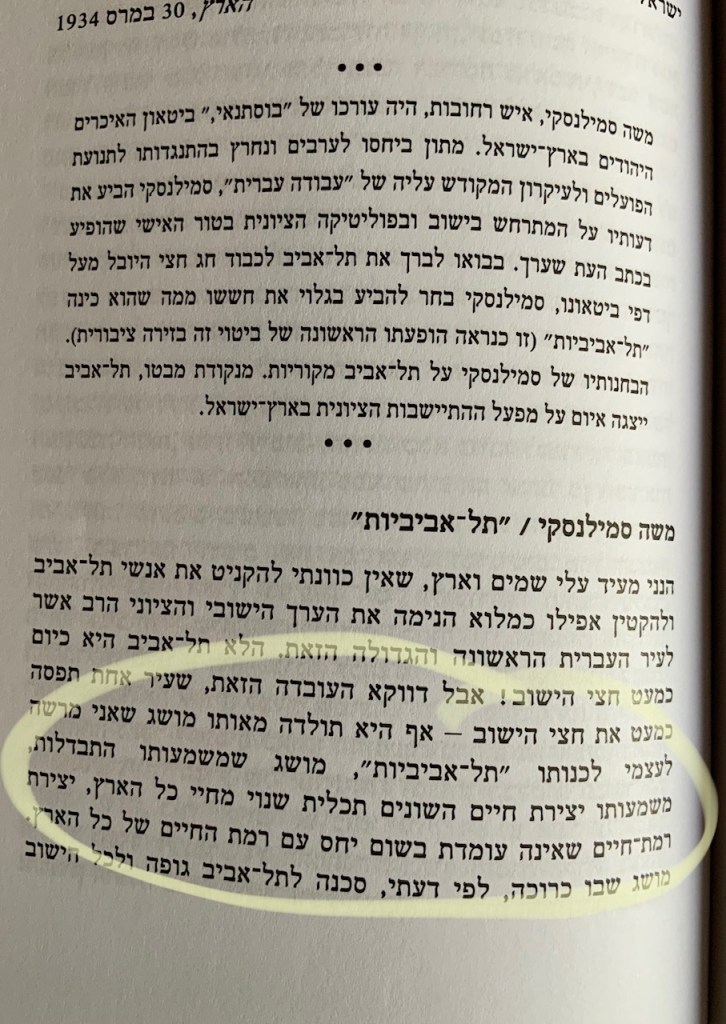 לציון ימים מורכבים אלו בתל אביב שבנו לעיין בספר תל אביב- חצי יובל אסופה תיעודית שיצא ב2009 המביאה מאמרים וביקורת על העיר במלאת לה יובל בשנת 1934. אנו ממליצות לעיין בספר ההיסטורי-אקטואלי הזה. אנו מביאות כמה דפים מהספר המעגנים את התחושה שגם תושבי “העיר בלי הפסקה” ופרנסיה לפנינו הרגישו תחושות דומות לתחושותינו היום לפני כ – שמונים ושבע שנים.