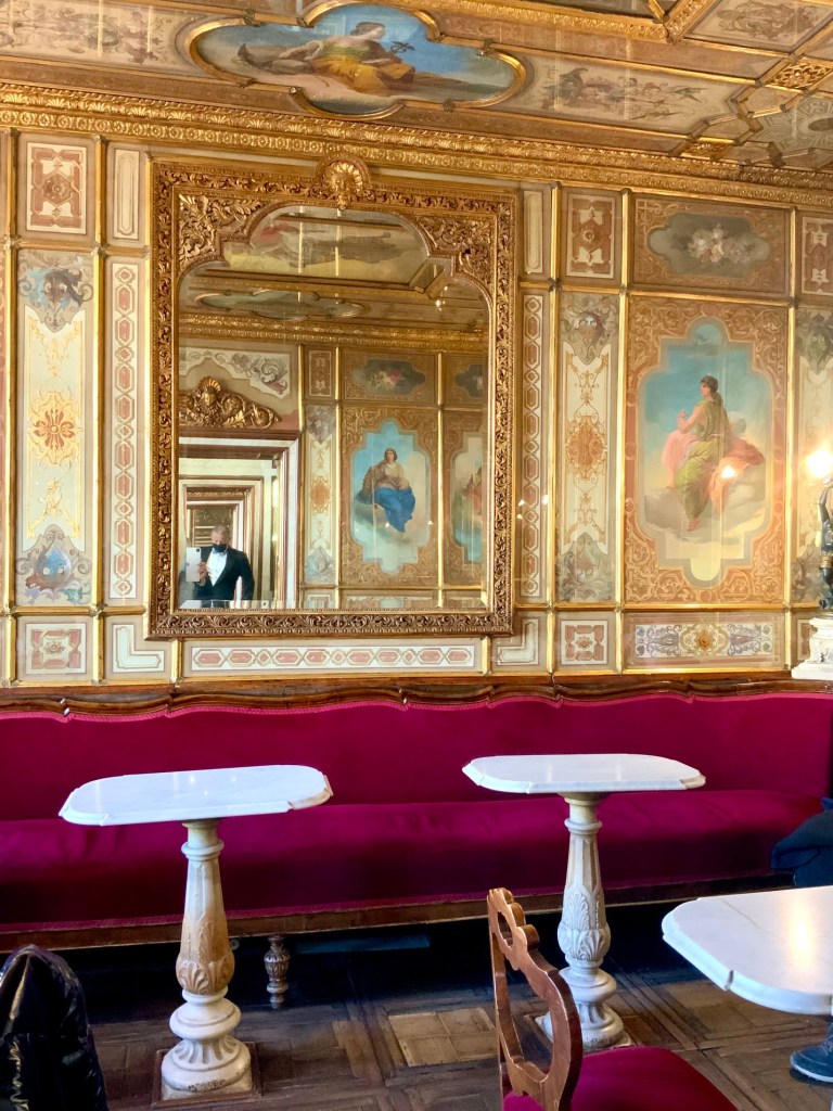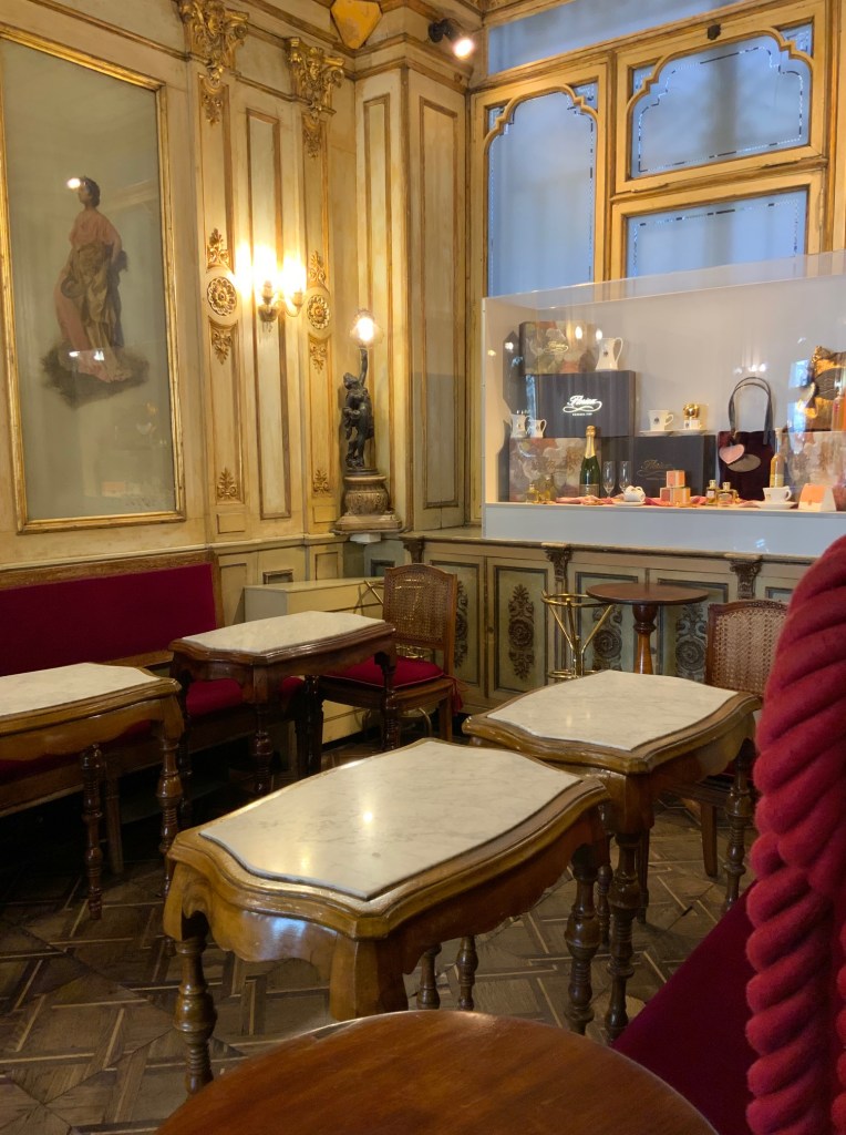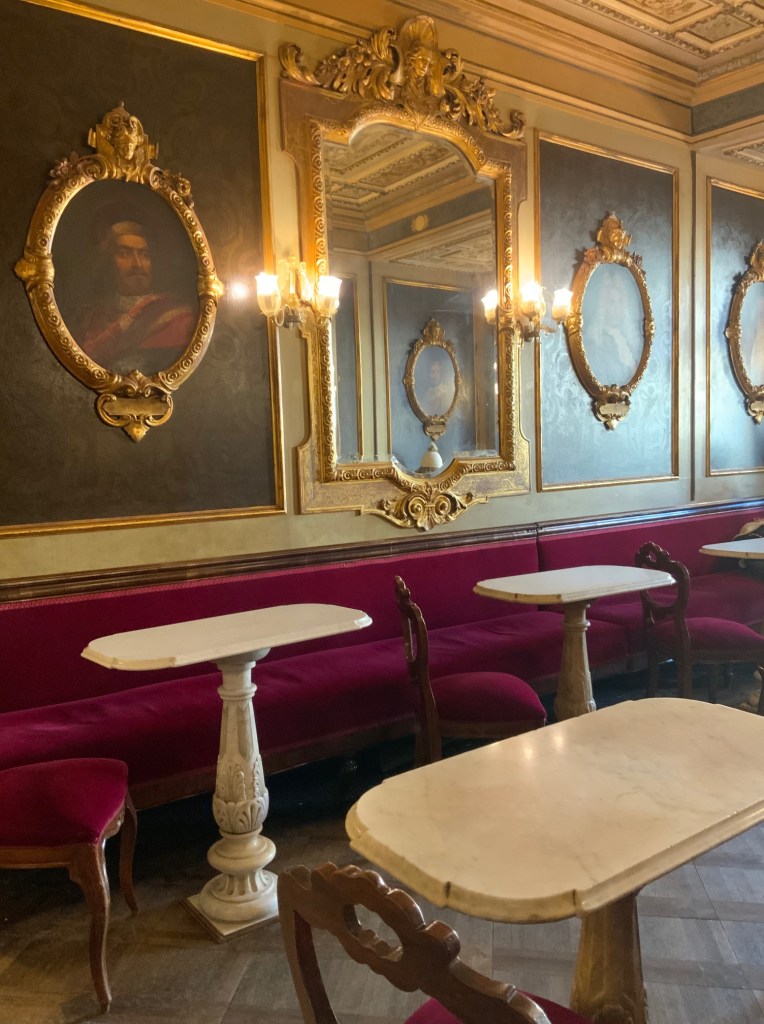פה ממש בבית הקפה הזה נרקם בשנת 1895 הרעיון של תערוכת האמנות הגדולה הידועה עד היום בשם הביאנלה של ונציה על ידי ראש העיר והמשורר Riccardo Selvatica כמחווה למלך אומברטו והמלכה מרגריטה. חווית שתיית הקפה פה היא מסע בזמן. כוס הקפה הוא קפסולה בעלת מימד זמן אחר, היופי נשקף מהמראות המקיפות את החדרים המעוצבים בהתאם לשמם, כמו חדר הסיני, החדר האורינטלי, חדר הסנאט ועוד.