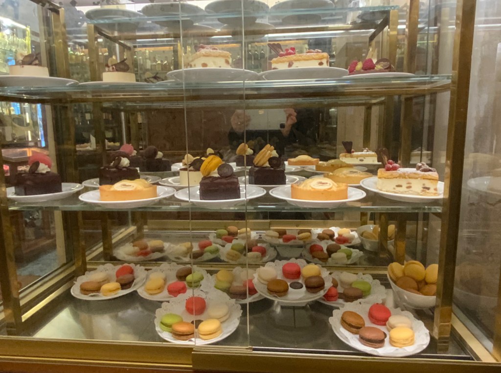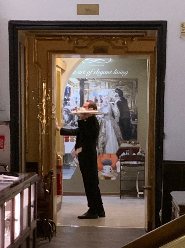 הקפה הוא מוזאון חי ורב חושי, בו ניתן גם לגעת במוצגים, להרגיש את השיש של משטח השולחן, לחוש את מירקם הקטיפה האדומה המרפדת את הספות, להריח את הניחוח של תערובת הקפה היחודית שהשתבחה עם הזמן, לשתות את המוגש בספלי החרסינה, לאכול את הרקיקים והעוגות, ולהתבונן בתנועת המלצרים המהודרים (כי פה זה מקצוע) לבושים בפראק שחור עם חולצה צחורה ופפיון, או עוטים שכמיית צמר רך הגולשת על כתפיהם באלגנטיות כשמגישים בחוץ. נעולים נעלי עור שחור הם אצים בזריזות על ריצפת העץ הממורקת, עם מגשי הכסף העמוסים על הכתף.