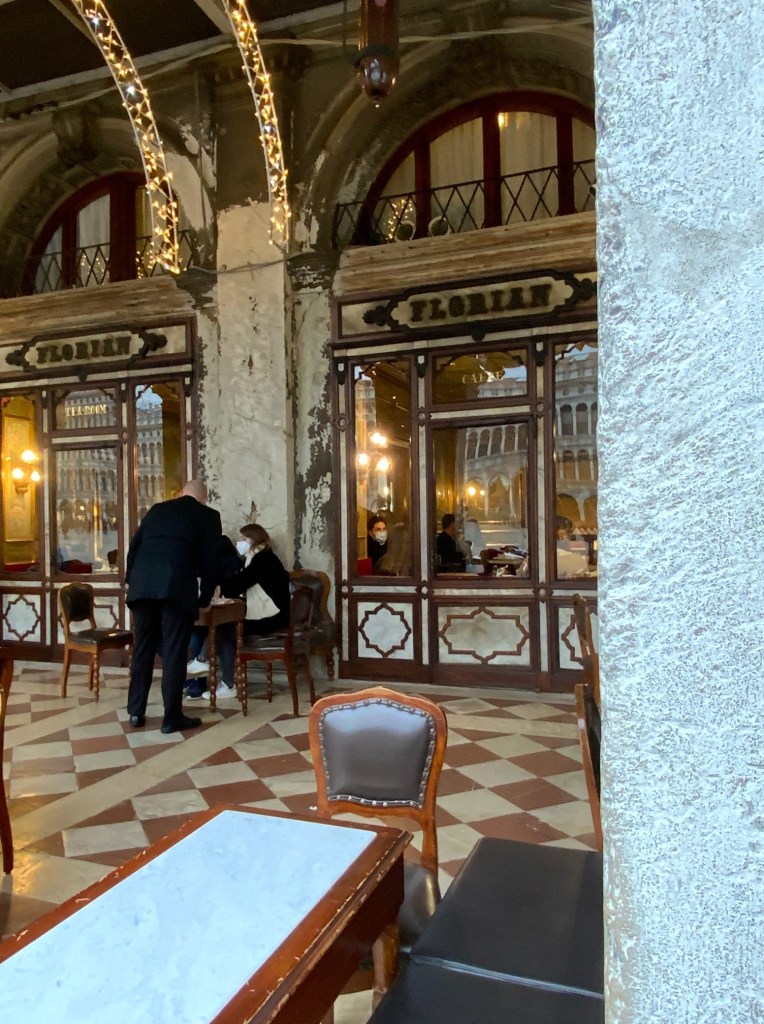 בקפה פלוריאן היתה לנו הפעם הרגשה מיוחדת מהולה בשמחה על כך שבית הקפה עדיין פועל, למרות שהכריז בהודעה לעיתונות בשנת 2020 לציון יום הולדת ה-300 על האפשרות שיסגור את שעריו בעקבות הסגרים הארוכים באיטליה שהדירו את התיירים והלקוחות מהמרחב הציבורי .