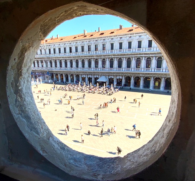 בבנין ממול הקפה הוסרו הפיגומים שניצבו במהלך חמש השנים האחרונות ונחשף מחדש המבנה שבו שכנו בעבר משרדי חברת ג’נרלי (בעלת המבנה מאז 1832). השבוע אחרי חמש מאות שנים, החללים העתיקים נפתחו לראשונה לציבור, ולפתע 100 “עיניים קטנות” מאפשרות מבט רענן מזוית חדשה לעבר יופיה של כיכר סן מרקו ההיסטורית.
