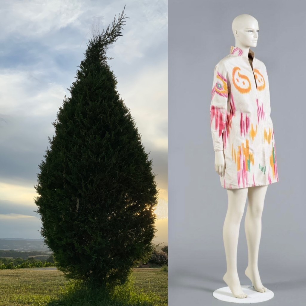 במוזיאון האיסלם בירושלים אני מציגה בגד שעיצבתי תחת הכותרת “אינטגרציה”: מעיל דו צדדי בגזרה אסיתית תפור משני בדים. מצד אחד, בד 100% כותנה חאקי המסמלת את בגדי העבודה, מדי הצבא, והקולוניאליזם שמופיעים לעיתים תכופות בנוף הישראלי. זהו נוף פיסי ואידאולוגי שבין היתר מחק את המאפיינים העדתיים והרב תרבותיים של הישראלים שהגיעו מכל תרבויות העולם. צדו השני של המעיל עשוי מבד 100% משי לבן ארוג באריגת טאפטה ועליו ציור ביד חופשית של מוטיבים ארוגים מטקסטילים בוכריים/איסלמיים כמו פייזלי ואיקט צבעוניים שהיו הבגדים המאפיינים את הלבוש של סבי ואבי סבי בסמרקנד.
