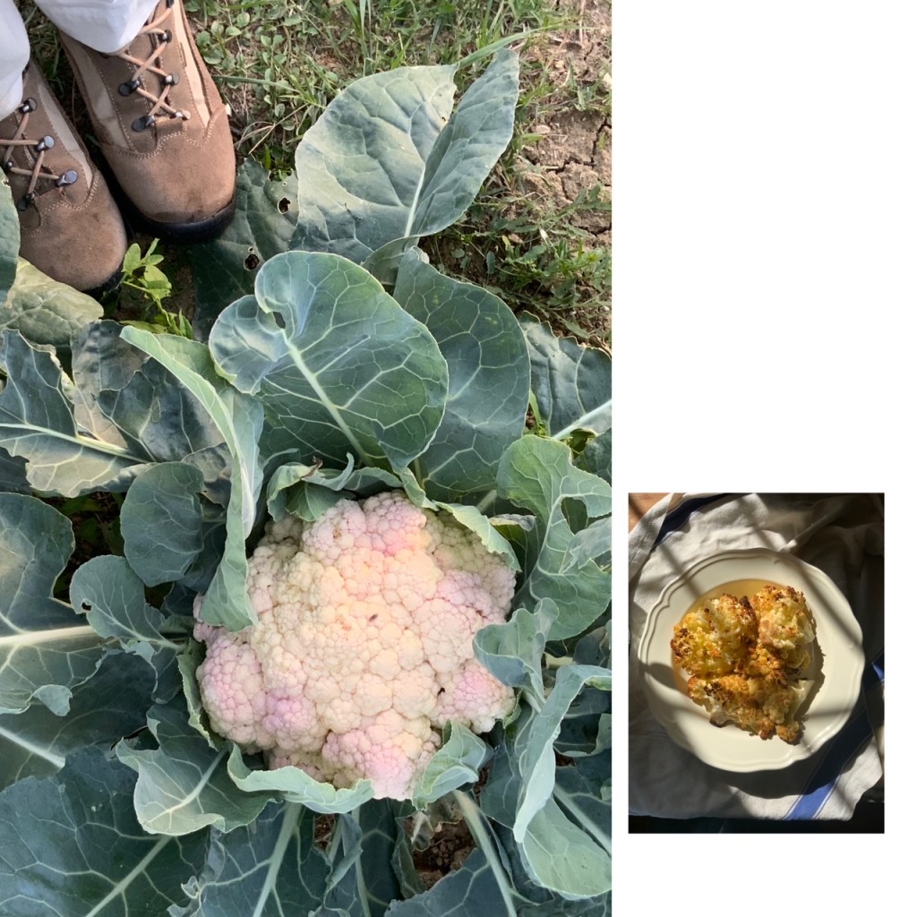 אנחנו מפרידות את פרחי הכרובית, מוזגות מעל שמן זית כתית טהור שמסקנו באוקטובר, מפזרות מלח גס ואופות עד שהכרובית מזהיבה.